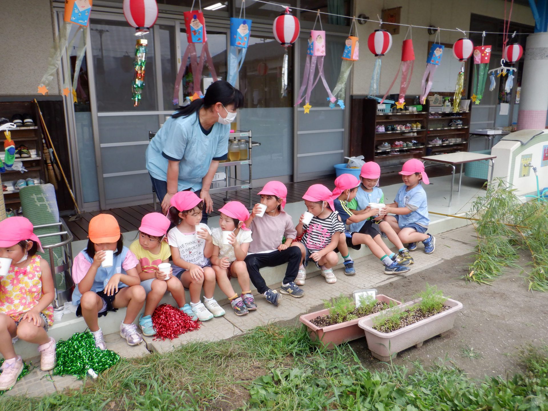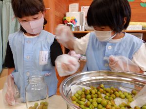 ・櫛原さんが、「梅ジュースは夏バテ防止になるよ」と教えてくださったことを覚えていた子ども達。保育園でも恒例になってきている。昔から伝わる知恵を子ども達も伝えていってほしいと願う。