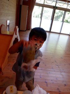 「誰が袋にいっぱいになるか競争だ!」