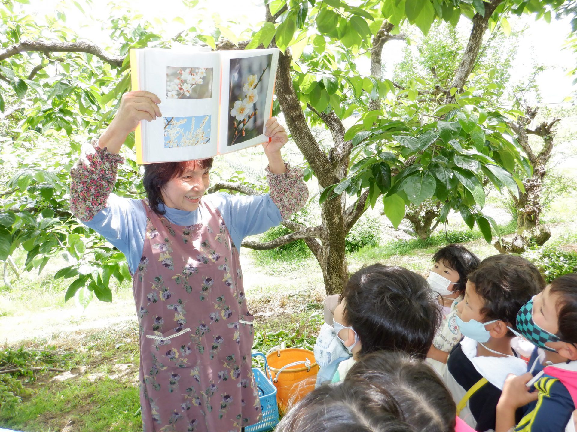 花が咲いて梅がなるまでの写真や手作りイラストを使って説明してくれます。