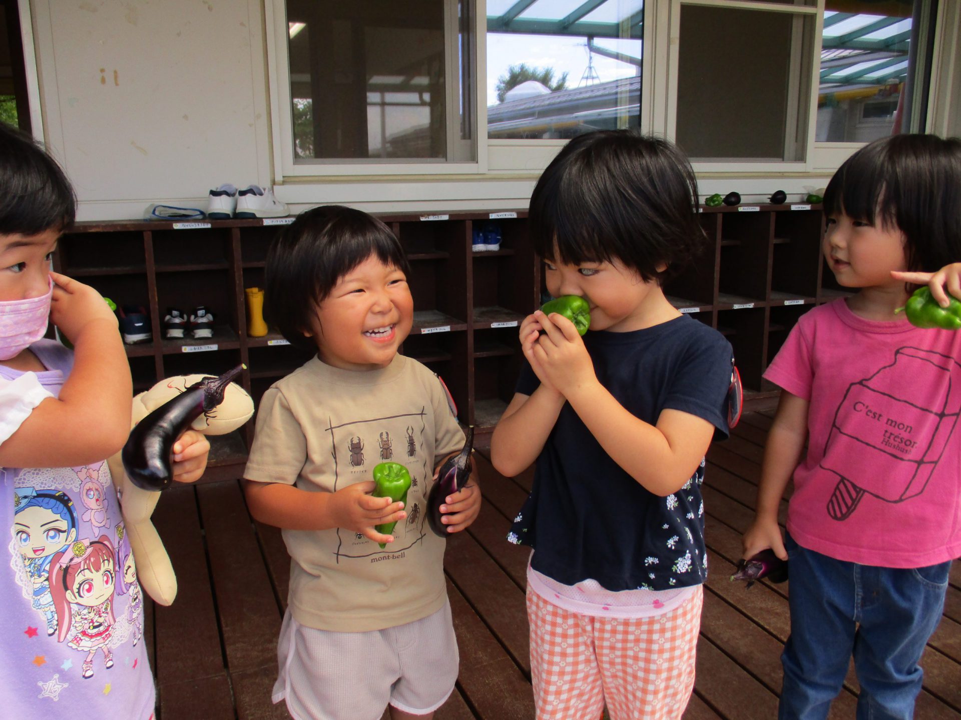 「ピーマンもなすもミニトマトも、こんなにいっぱーーーい!」
