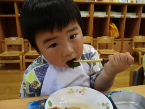「ぼく、なす苦手だけど・・・食べてみる・・・」