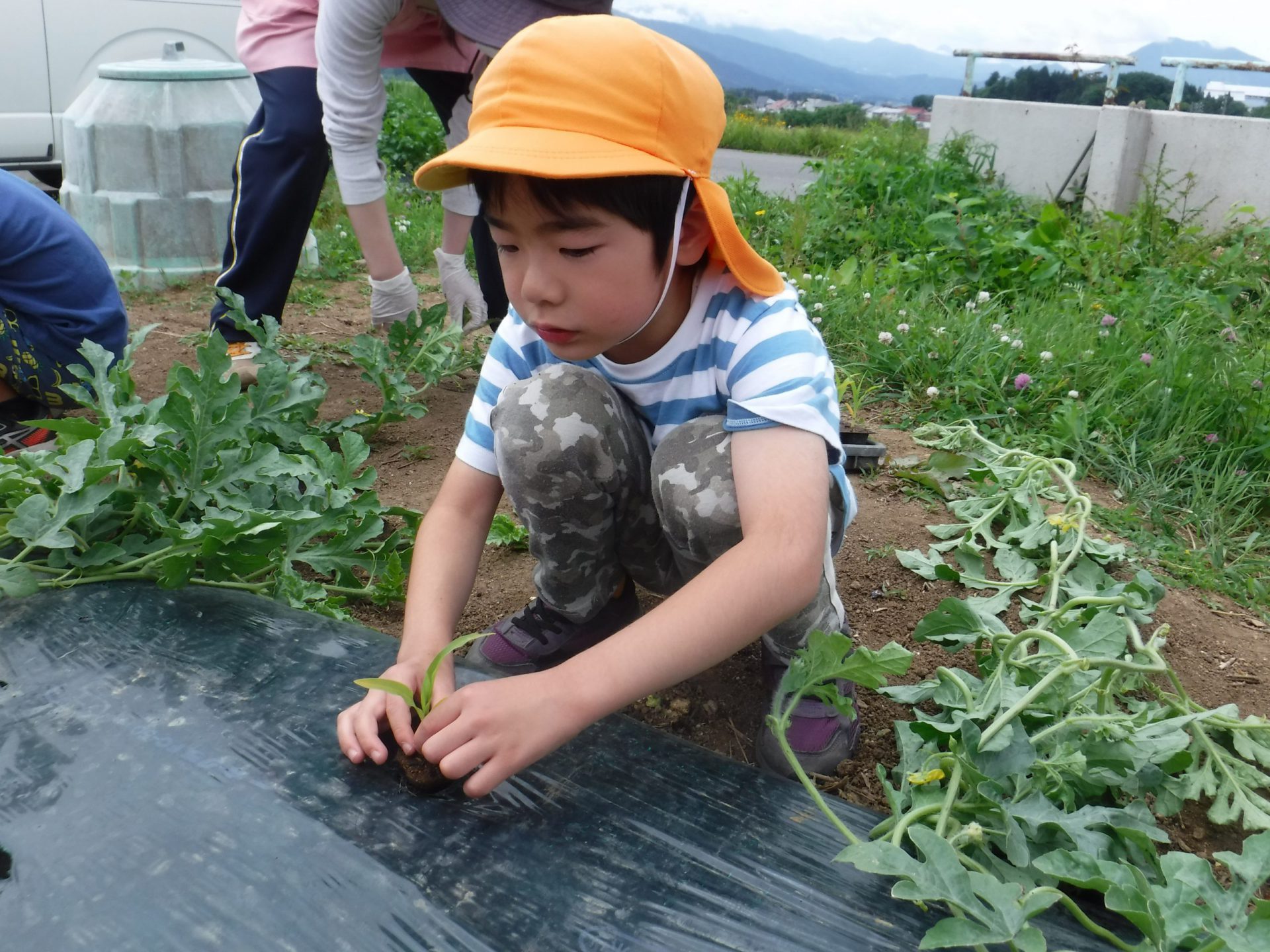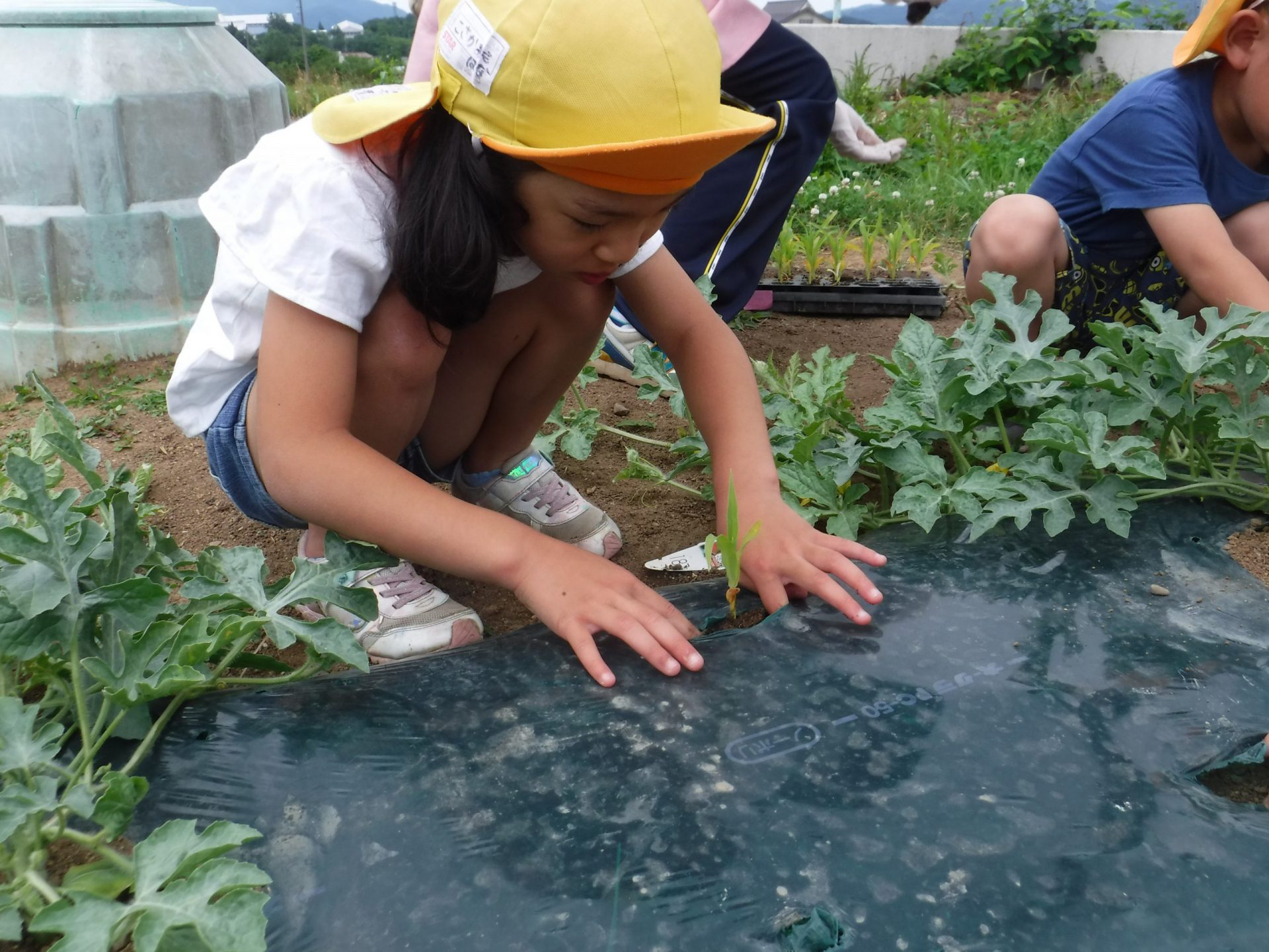 スイカの畑に一緒に植えました。