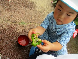 視覚・嗅覚・触覚を使い、意欲的に遊びを広げている子ども達の姿が、とてもステキだと思いました。
