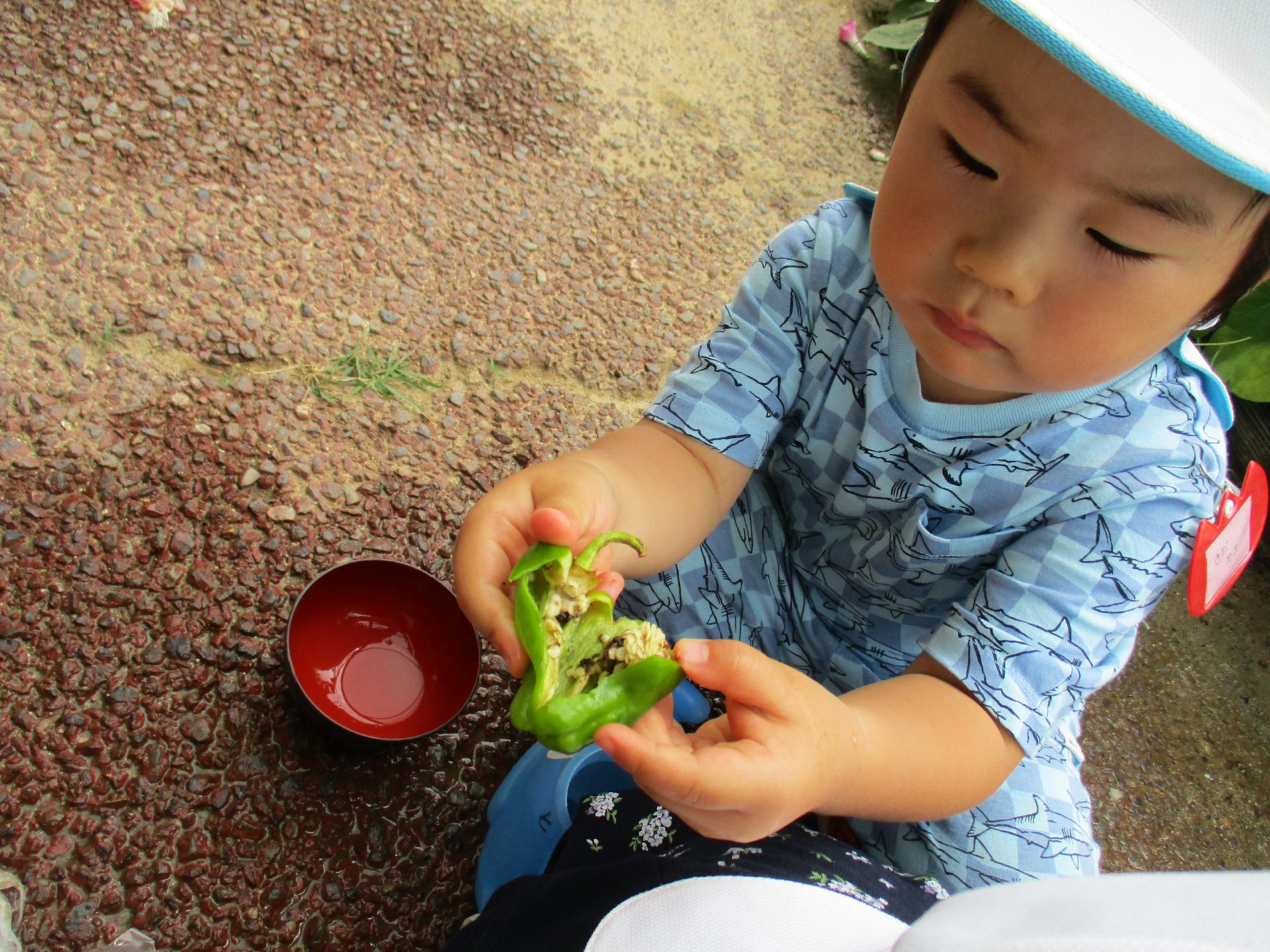 「ワァ!ピーマンの中にこんなにタネが入ってたよ」