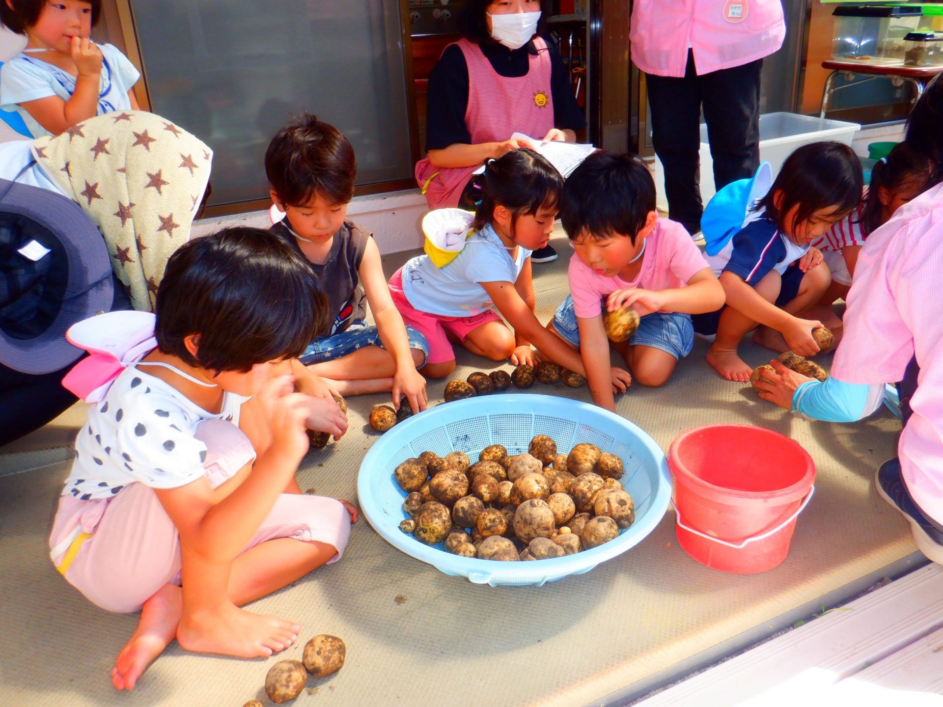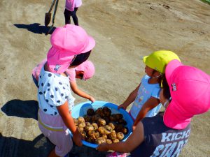 収穫したじゃがいもは年長さんを中心にじゃがいもを運びます。