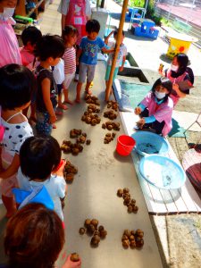 以前、経験した「玉ねぎ収穫」で学んだ「10個」の山を作って数を数える姿が、大人が何も言わなくても、子ども達の中から出てきたこともうれしかったです。