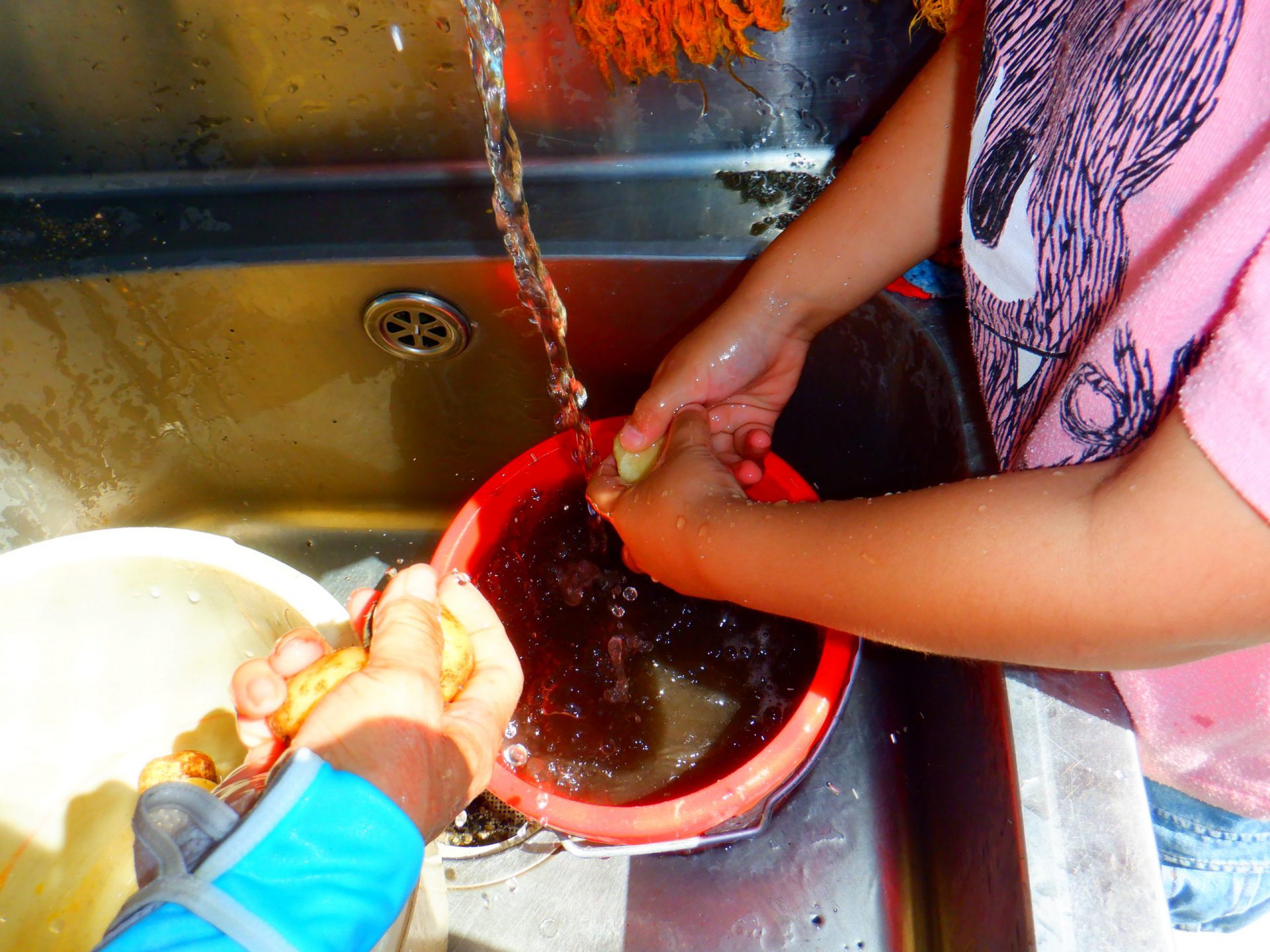 年長さんが水で洗って・・・