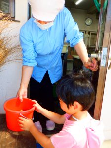 異年齢の関わりを通して、このような生活の知恵が大きい子から小さいお友だちにつながっていくのだと思います。我が園ならでは良さではないかと思いました。