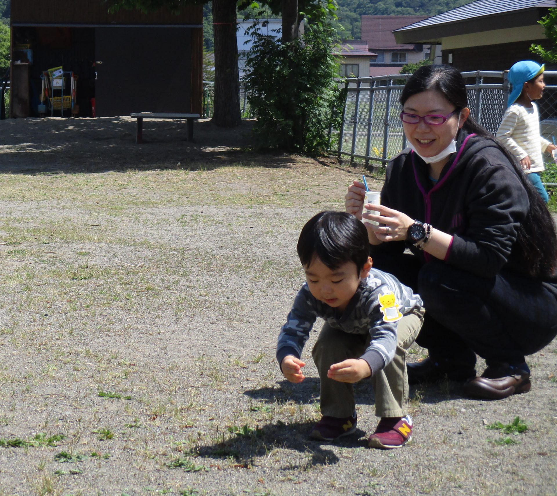 「ほら、見ててごらん」 1、2歳児のお友達にやさしく見せてあげる、微笑ましい場面がたくさんありました。