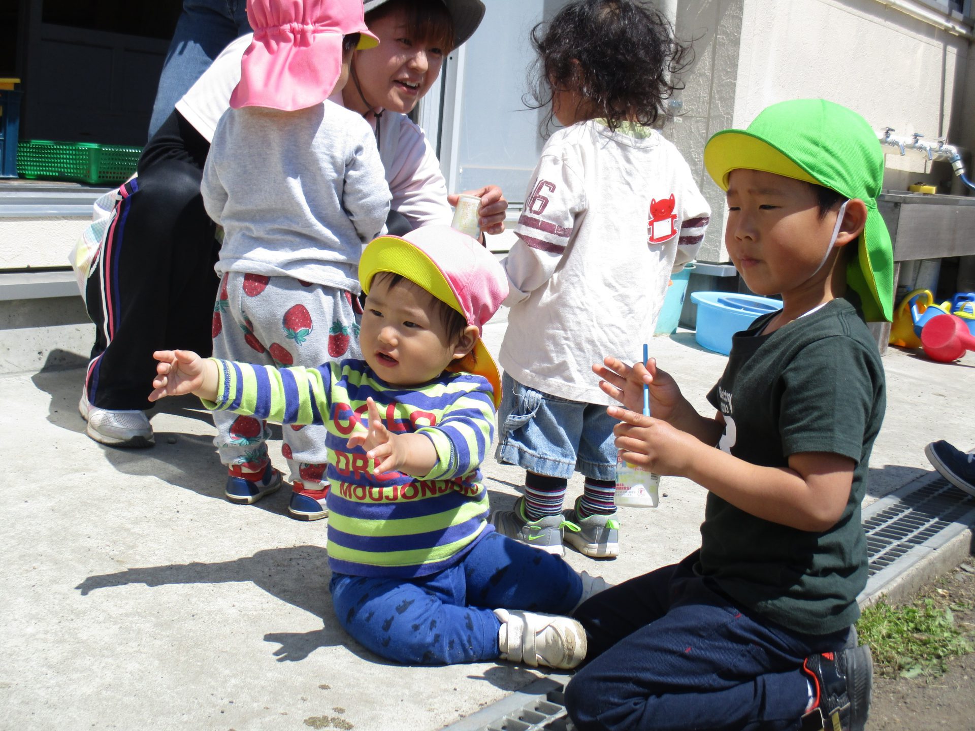 天気が良く、風も気持ちがいい一日、地域の未就園児の子が保育園に遊びにくる、『ちびっこあつまれ』がありました。