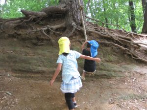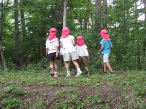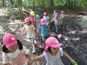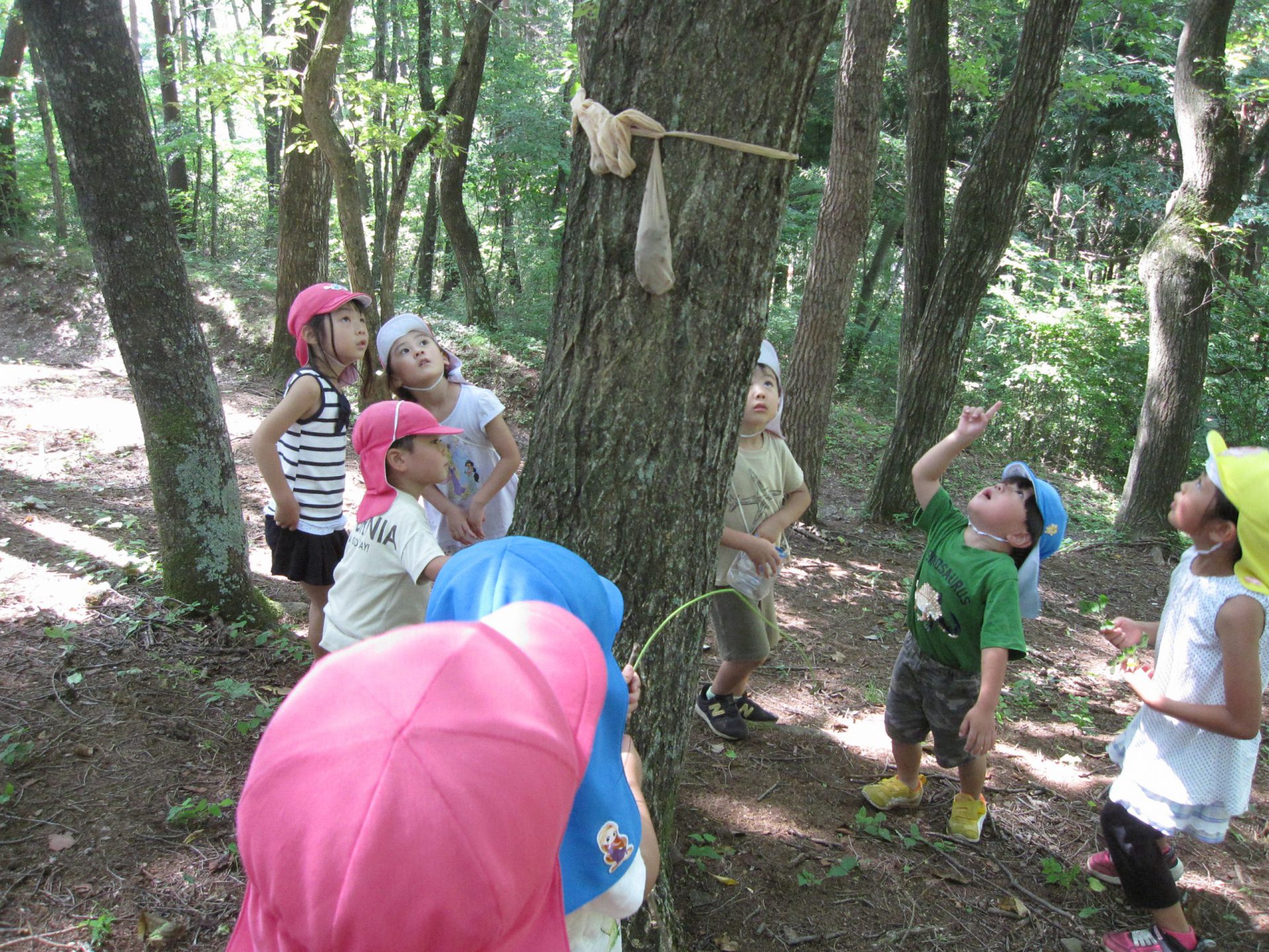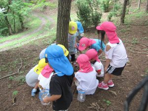 「うらやまに カブトムシいるかも」ということで、8月のある日みんなで裏山へ!