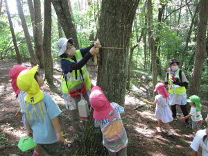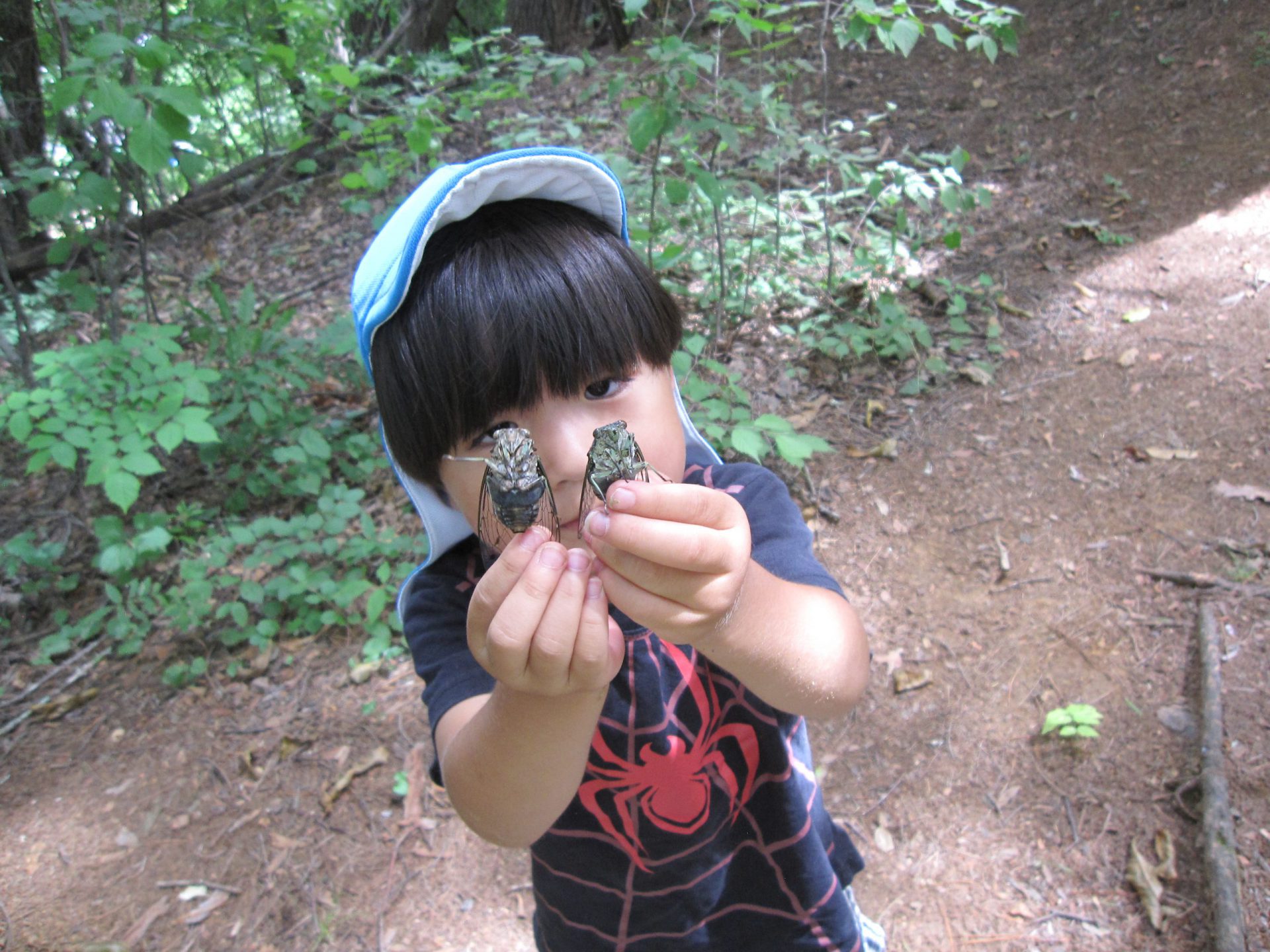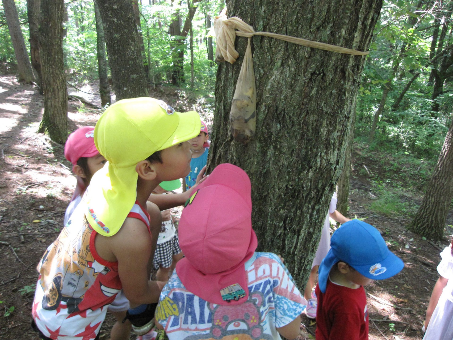 「セミのぬけがら みつけた」「生きている セミもいるよ」「木の上にいるよ」