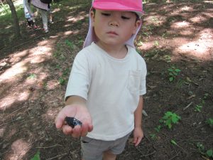 カブトムシ、クワガタに興味を持っていたので、実際に捕まえる経験ができればよかった。思った通りにはいかなかったが、他の虫や植物をたくさん発見して充実した時間となっていた。