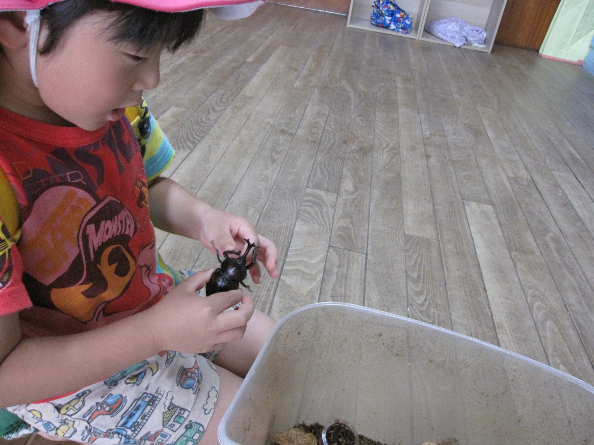 毎日、カブトムシのお世話をしたり一緒に遊んだりしています。