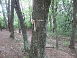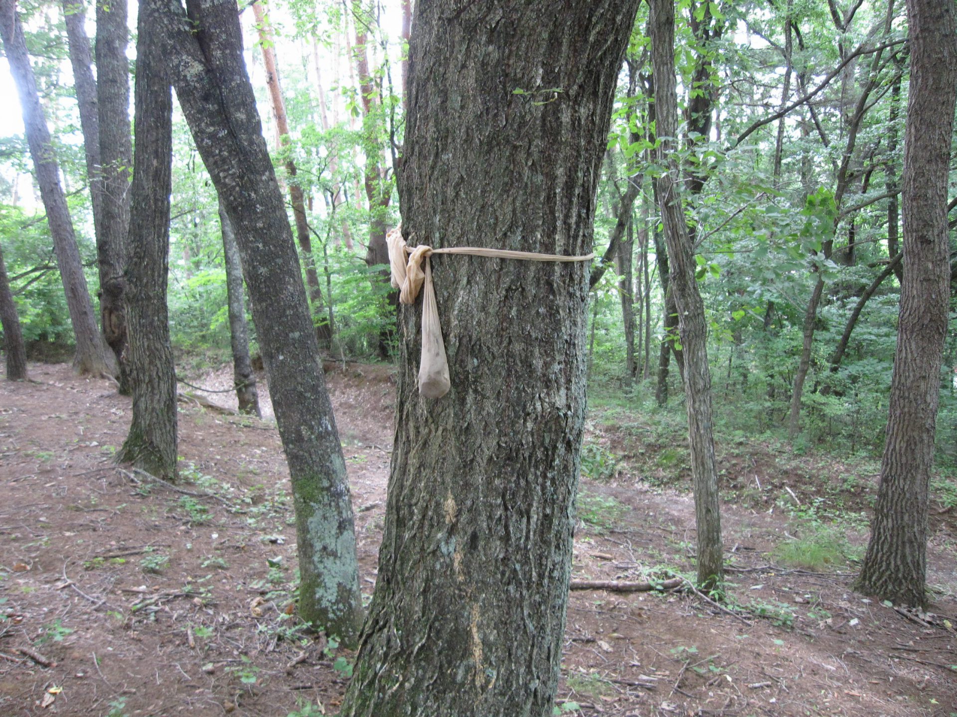 カブトムシが来るようにバナナトラップを仕掛けます。