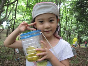 「なんか おさけのにおいする~」「カブトムシのゼリーのにおいがする~」「くさ~い」「明日、また来ようね」と楽しみに帰りました。