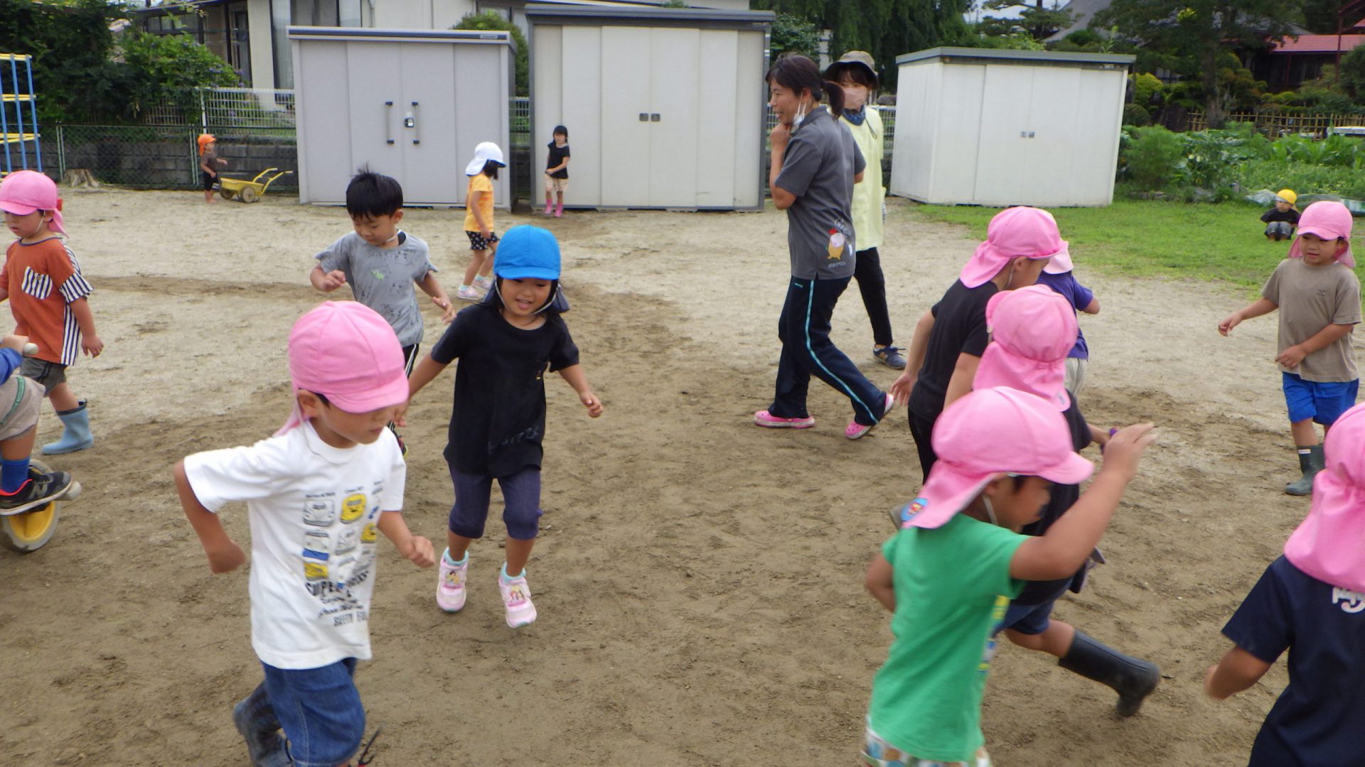 「あ~楽しかった!」「これで夏祭り出来るね」と自分たちが均した園庭を振り返ってみていました。
