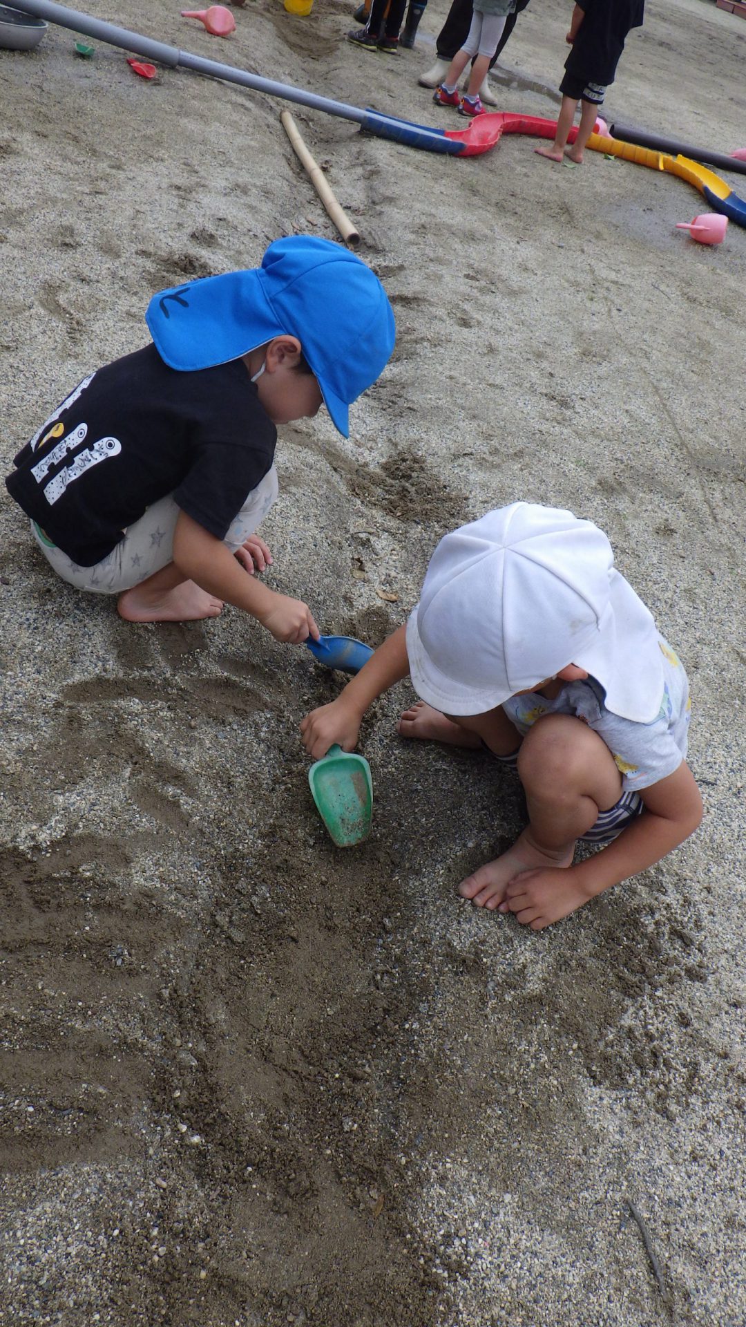 小さいシャベルだから細い川の所は僕達に任せて!