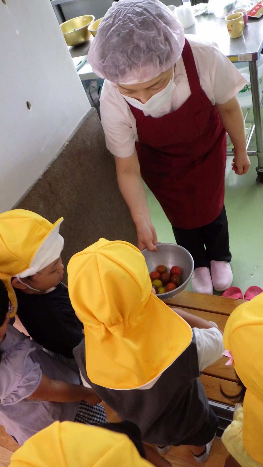 お昼に自分のミニトマトを見つけ喜んで食べています。