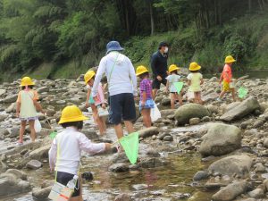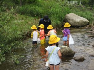 ・川遊びとなると準備や時間の確保に大変だと思ってしまい、なかなか園外活動として取り入れにくいと感じていましたが、今回着替えをすべて保育所で行ったり、移動をバスにすることで、イメージよりも簡単に出かけられると実感したので、来年の活動としてもっと機会を増やしていきたいと思いました。