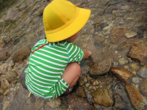 一方、きれいな石を見つけて楽しむ子どももいます。「見て!この石ツルツルしてるよ」「きれいな石、見つけたよ」と、お土産にします。