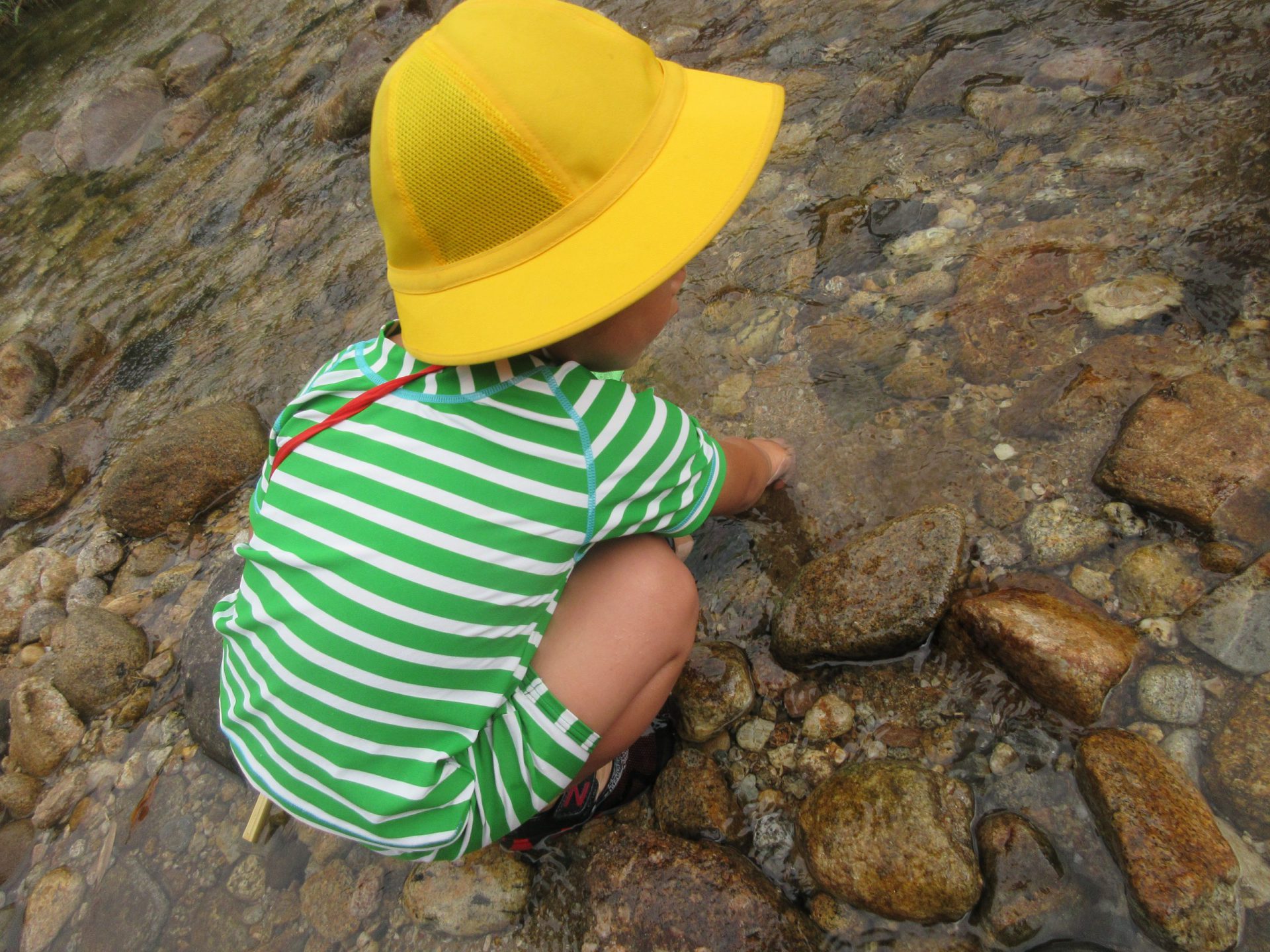 自分も捕まえたいと、場所を変えながら再び生き物探しを始める子どもたち。