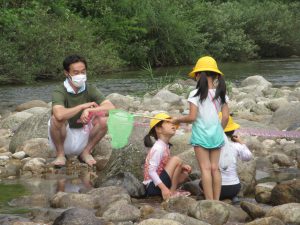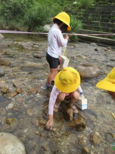 ・魚を捕まえることを楽しみにしていたのですが、前日の下見で見た魚がいなかったものの、子どもたちは各々に楽しみを見つけて川遊びを満喫していました。