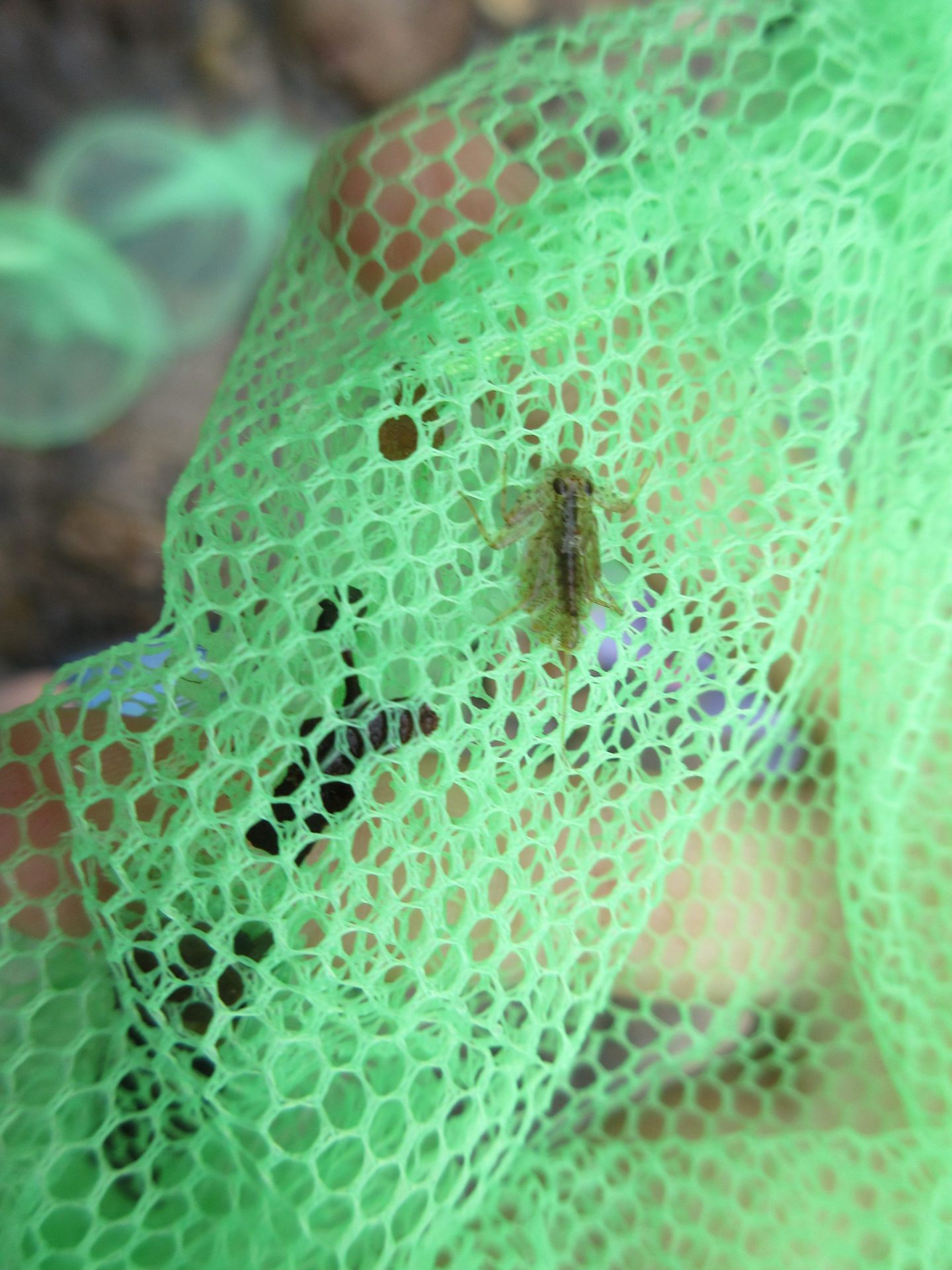 カワムシ(カゲロウの幼虫)を見つけて、捕まえます。