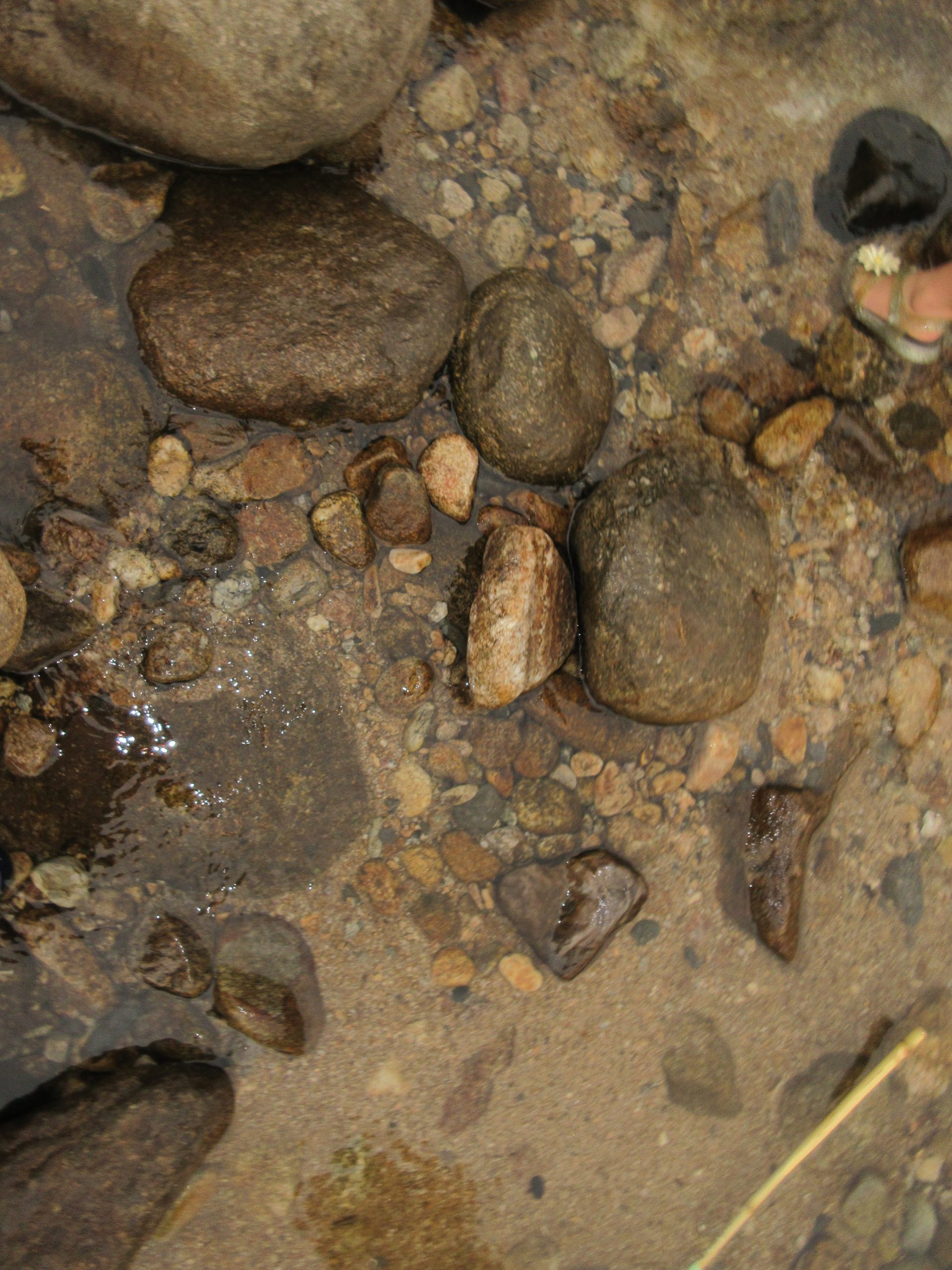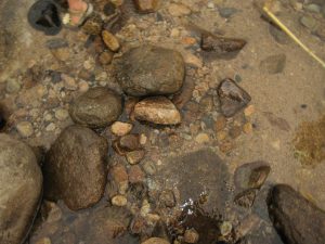 浅瀬で流れが緩やかな所で、石をどかしながら探します。