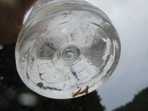 見つけた生き物はペットボトルに入れて持ち帰りました。