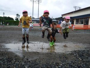 「先生見て〜」 「ジャンプすると水すごいよ〜」
