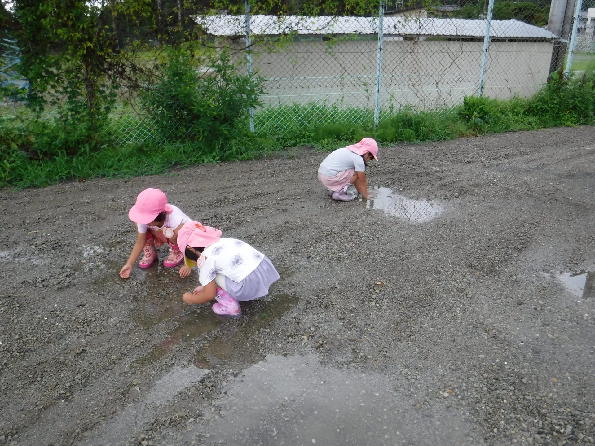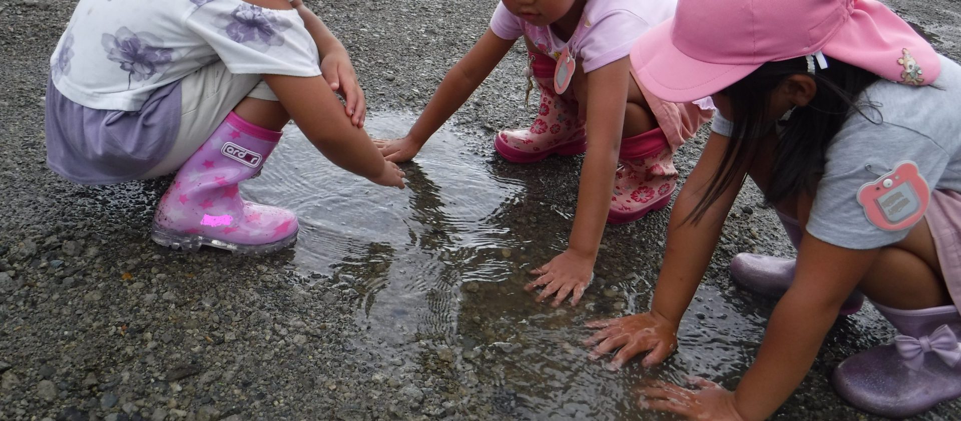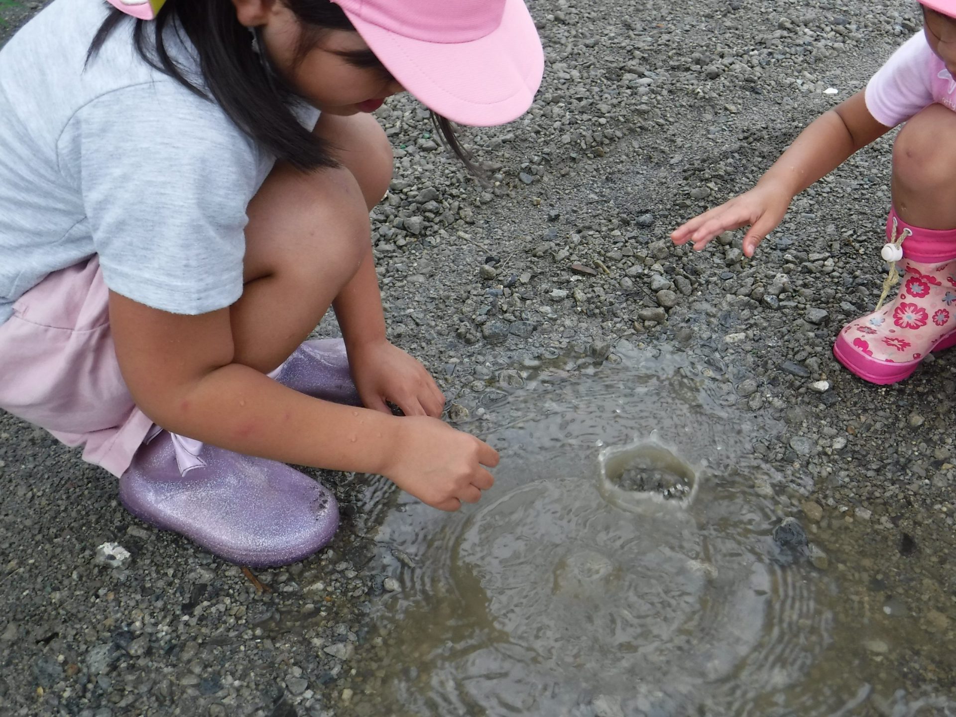 といろんなところの水たまりを触って確認していました。