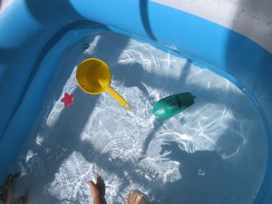 お風呂より大きなプールにドキドキする子ども。