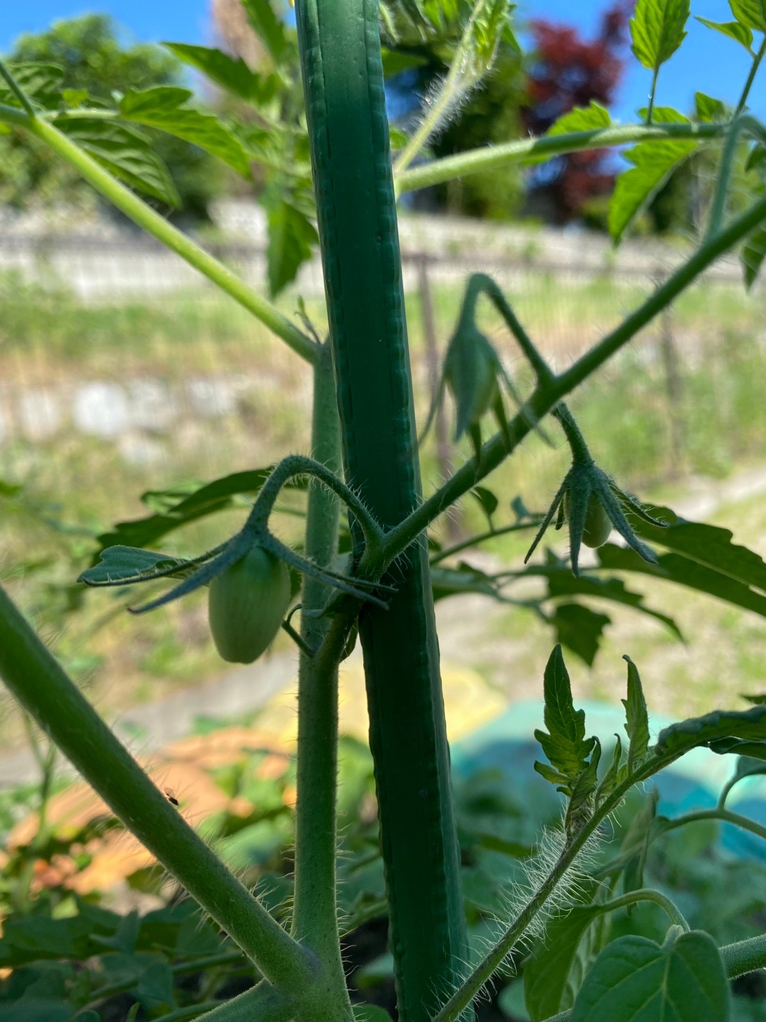 「ちゃんと、種ができてるよ!」 「種も緑なんだね」 「トマトの匂いするよ」 「赤くなるの楽しみだね」