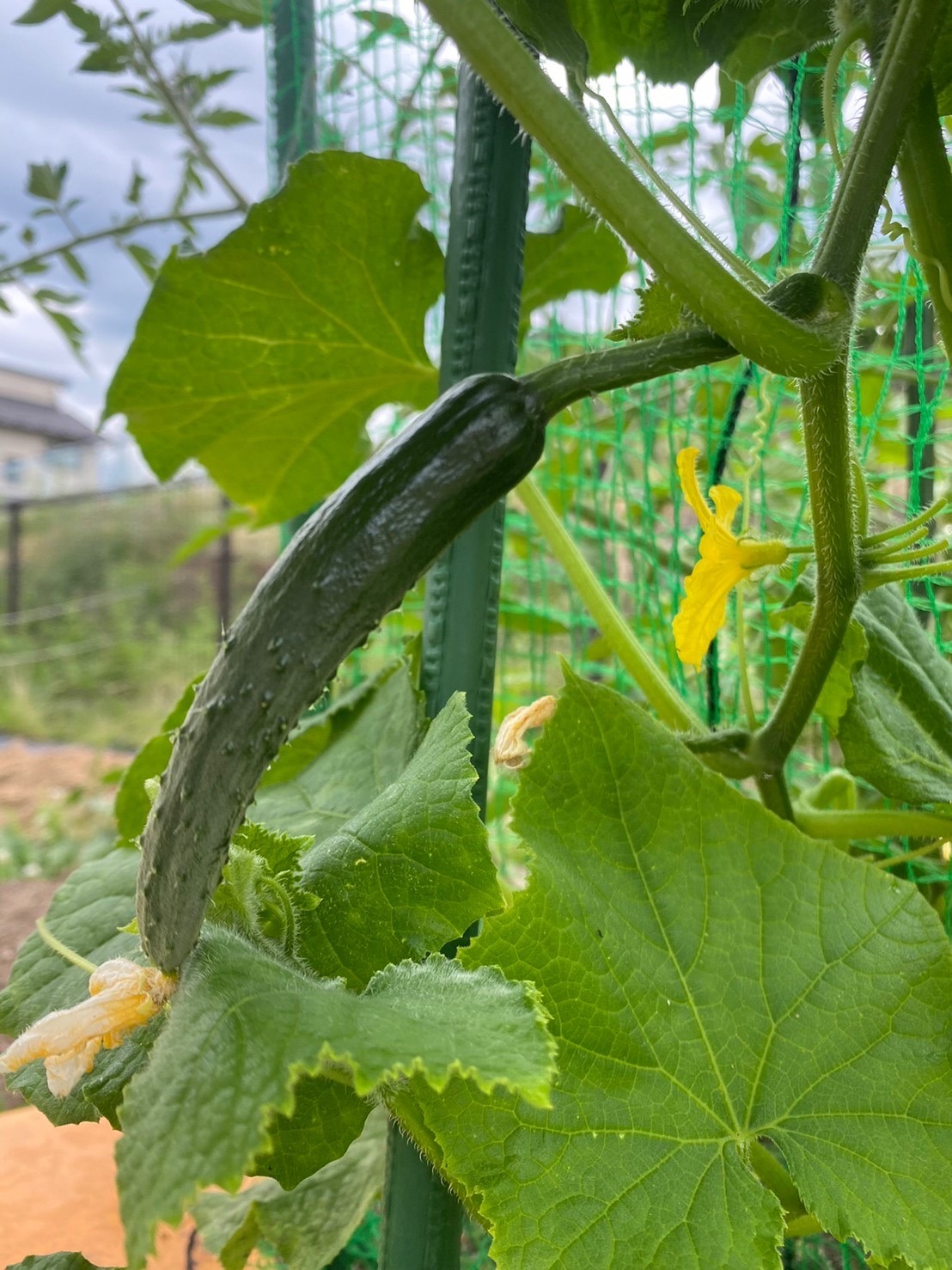 ・きゅうりは、花が咲いたところから小さなきゅうりが出てきて、だんだん大きくなっていくこと