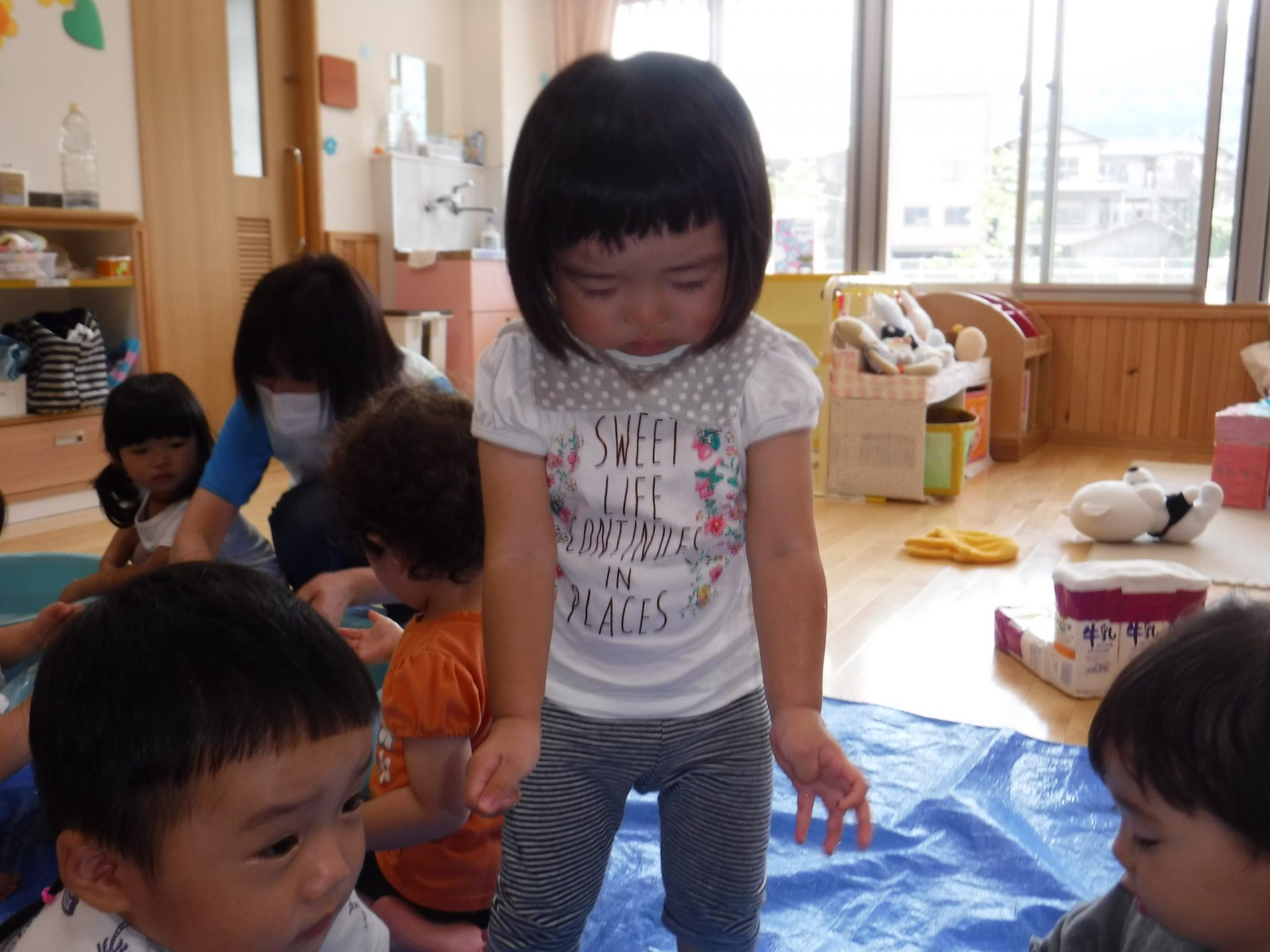 最初は初めての感触に戸惑いを見せる姿がありましたが、遊んでいくうちに色々な感触を知り、楽しさを感じるようになってきたようです。