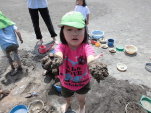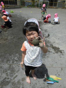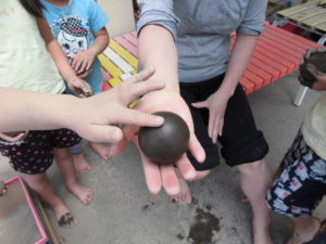 3歳児「ほら、見て!わたしも泥だんごできた(^◇^)」
