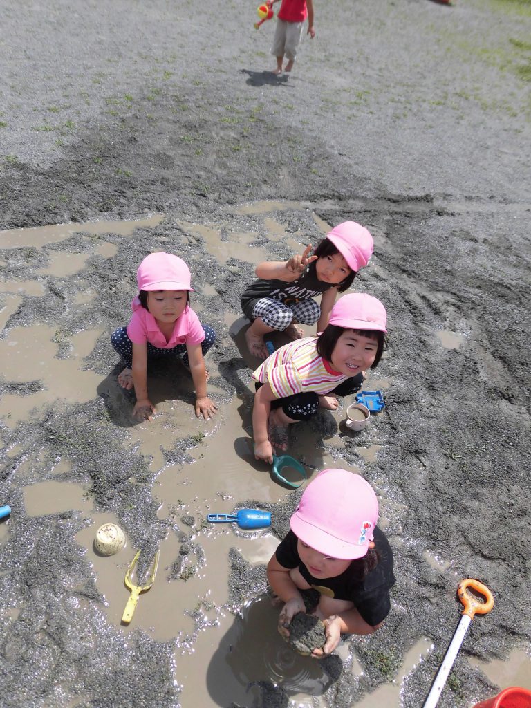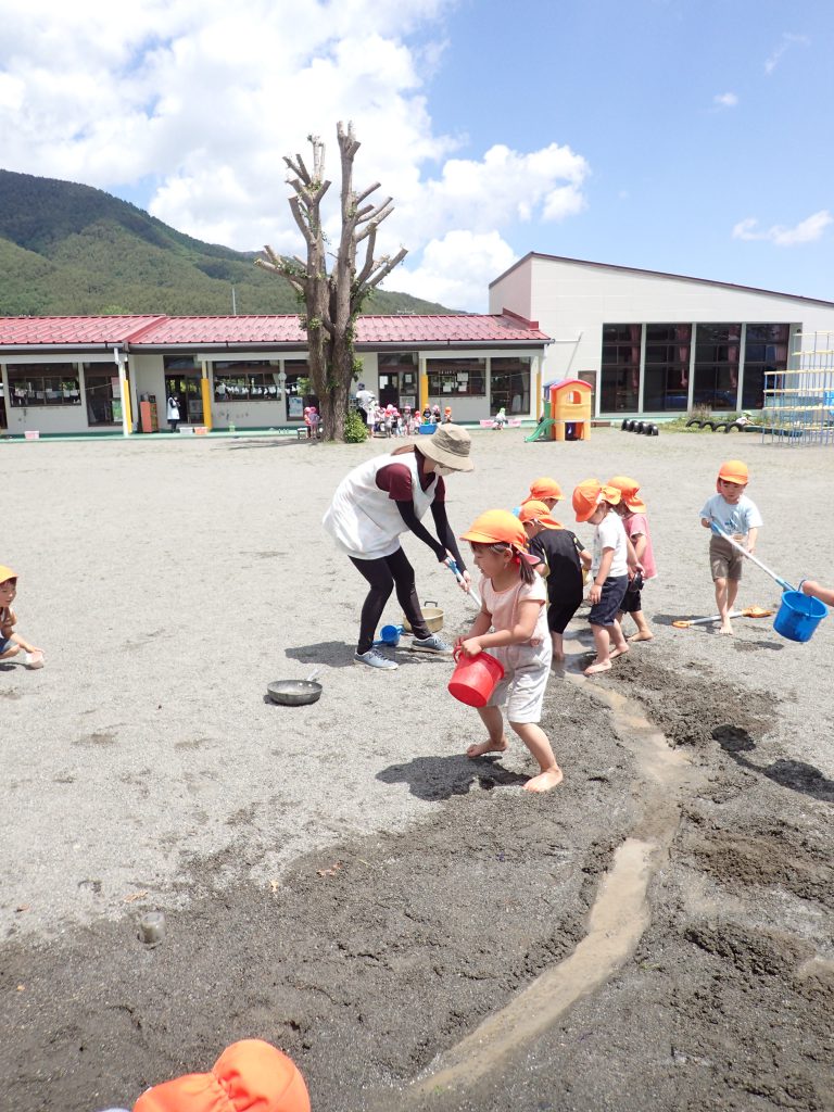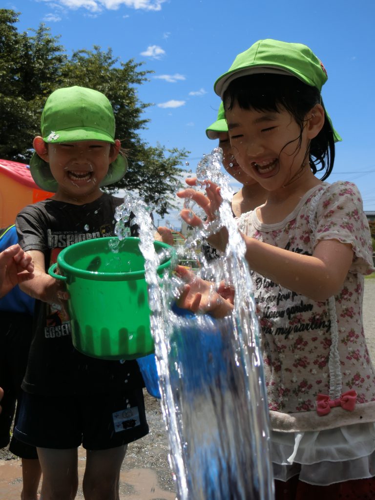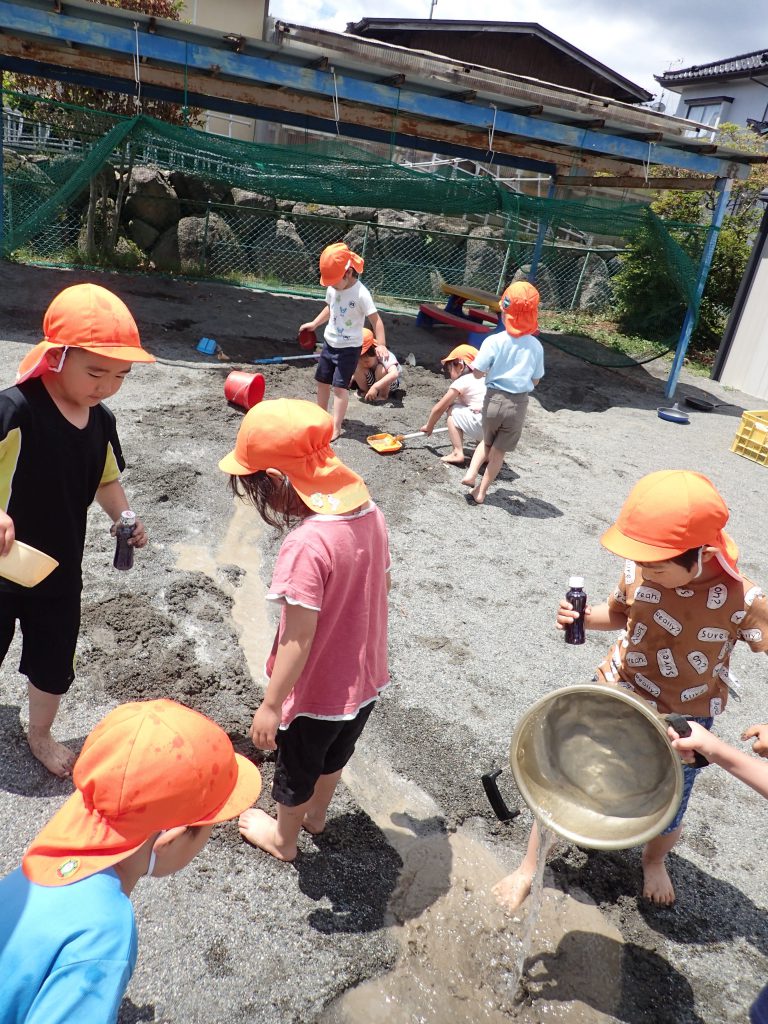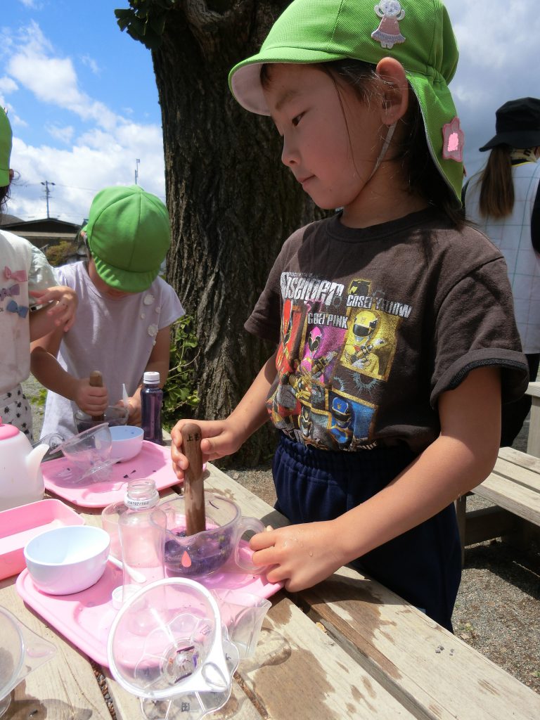 ◇異年齢交流もかねて学年の枠を超え、色水遊びをしました。