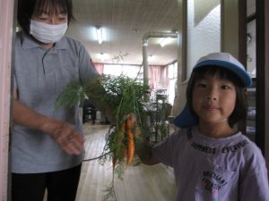 事務室にも見せに来てくれました。かわいい人参にほっこり(o^―^o)