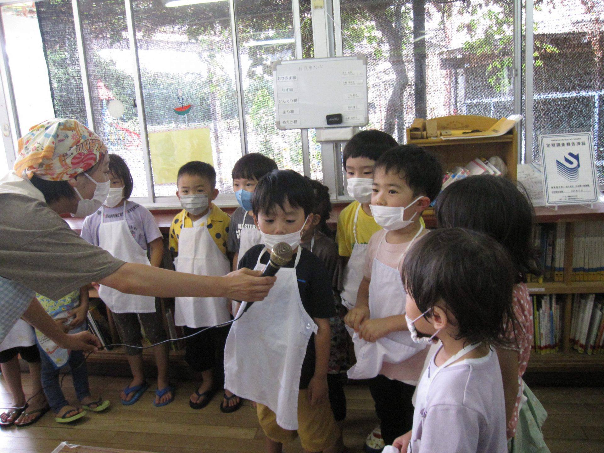 そして、恒例の放送局。いつもは給食時におひさま組が園内放送で「おひさま放送局」をやってくれます。ふだん、それを聞いていたりす組さん。今日はりす組さんの番です。♬張り切っています。♬