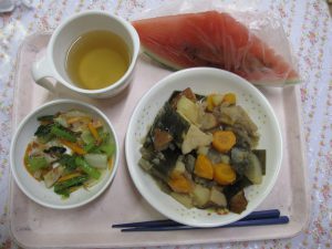 収穫した人参は今日の給食(おでん風煮・小松菜のお浸し・くだもの)の中に・・。