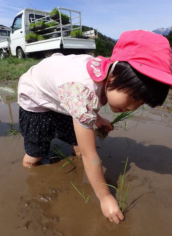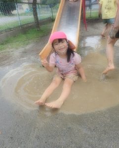 戸外でも季節・気温に応じて様々な遊びをしていますが、泥んこ遊びや田植えでは泥の感触を楽しむ姿がありました。