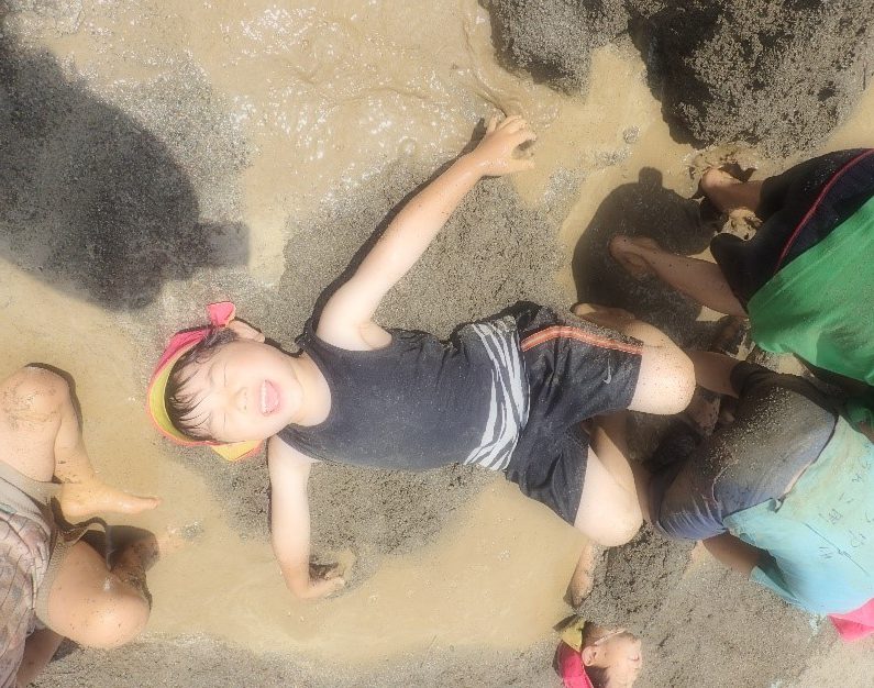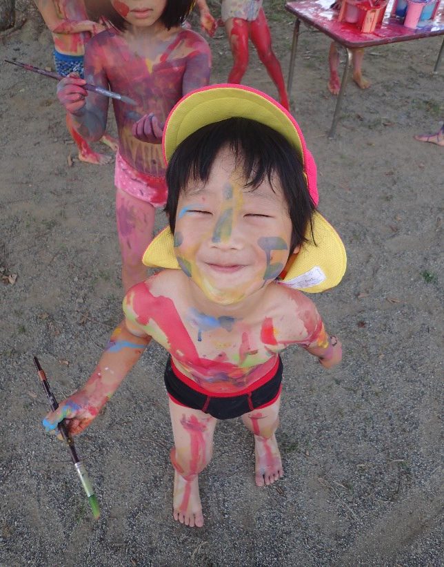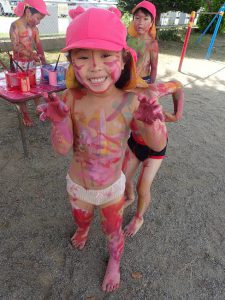 全身泥んこになってダイナミックに遊んだり日陰でボディペインティングをして遊びました。