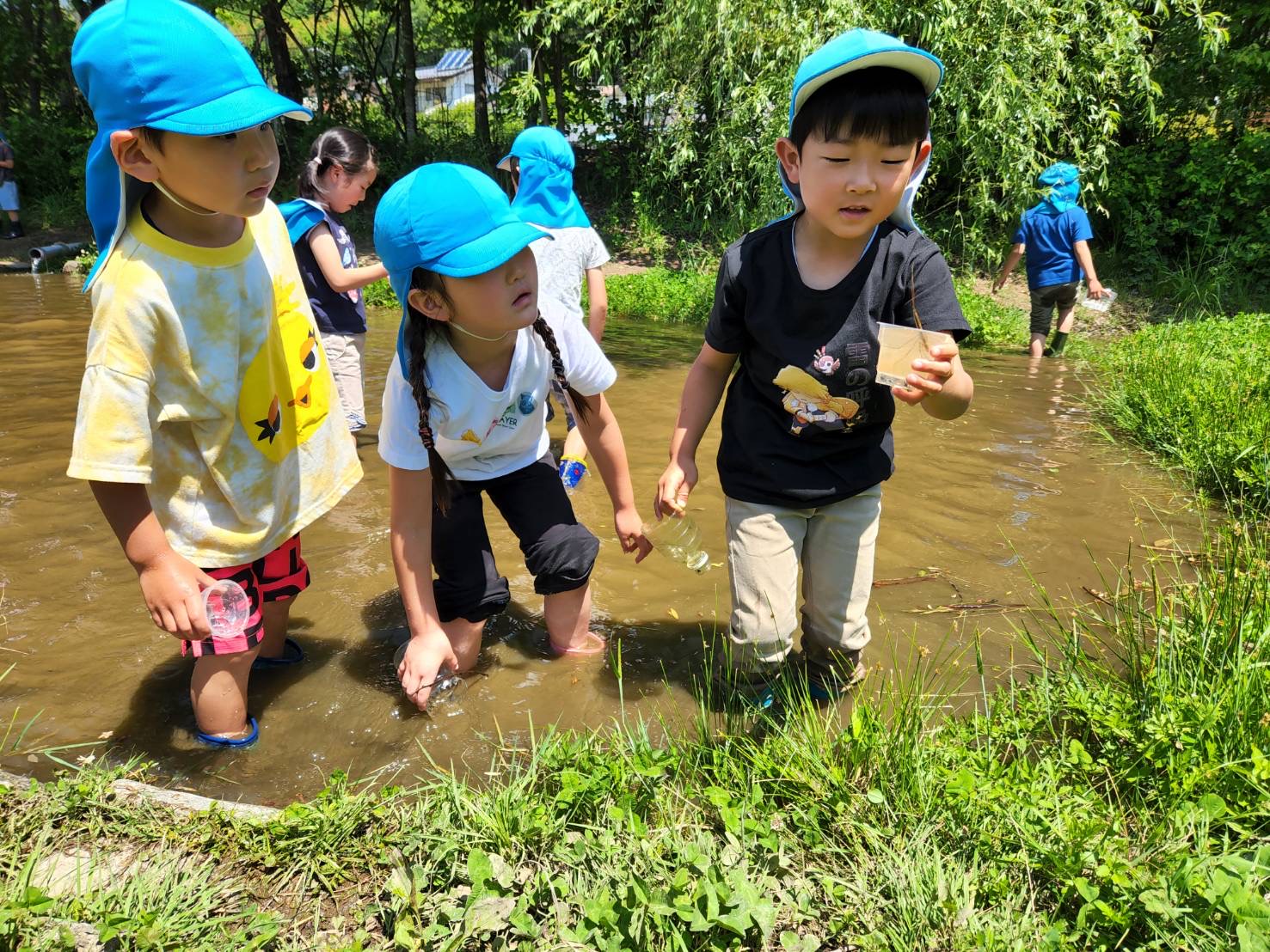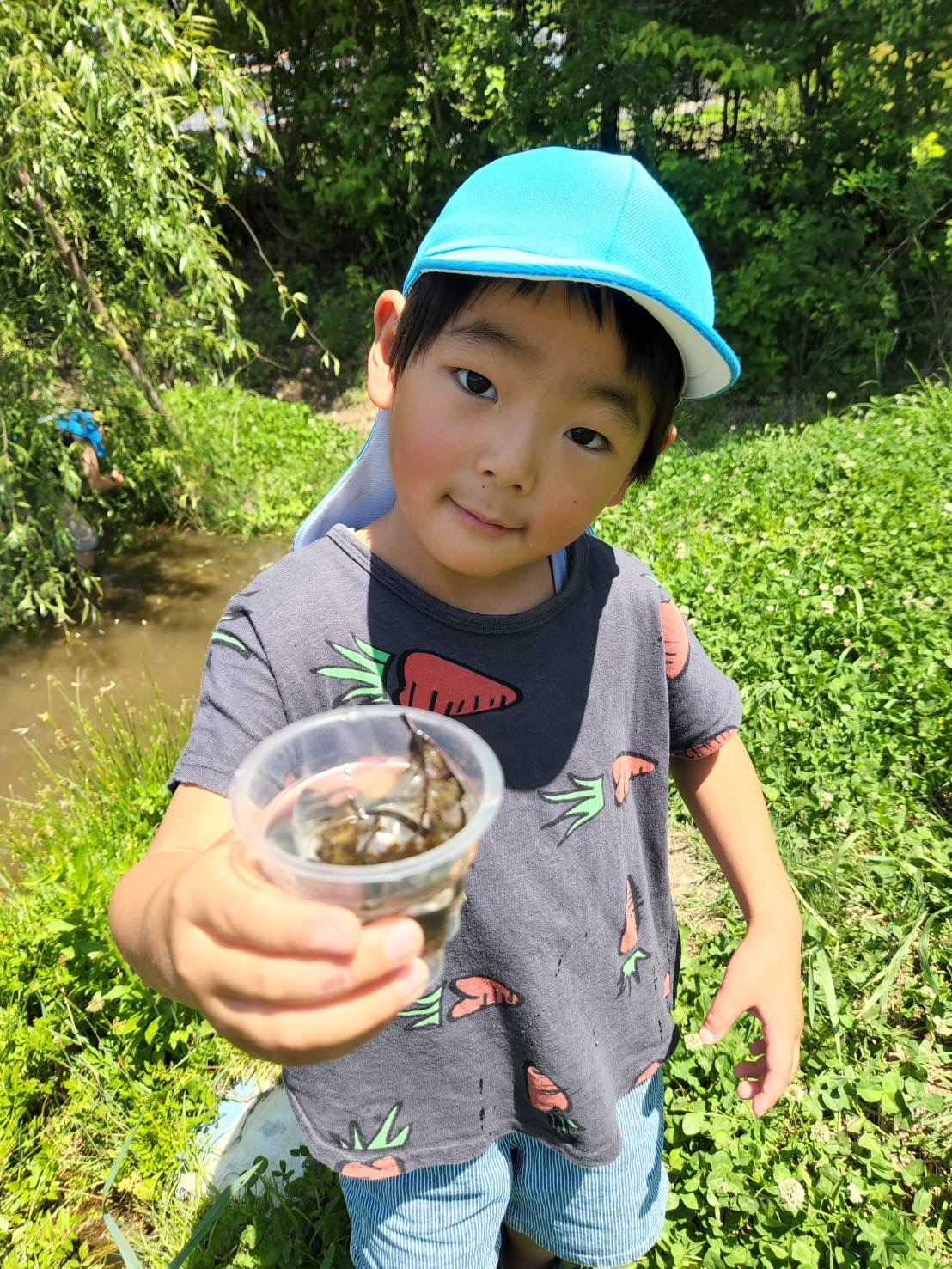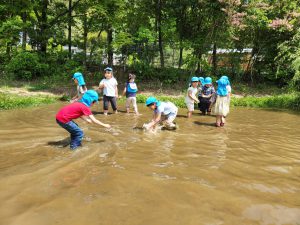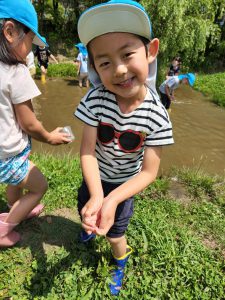 ・広場で捕まえた生き物にも命がある。乱暴に扱ってはいけない事や、最後はまた池に戻してあげよう。など、年長になると、子ども同士で伝え合う姿もありました。