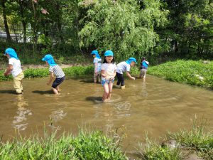 ・水は道具を使うと上手に運べるという事や、「水の流れと反対に歩くと大変だ」「でも流れと一緒に進むと楽ちんだね」「流れが速いとちょっと怖いな」という事も学びました。