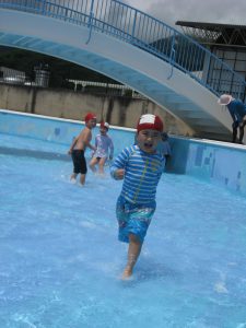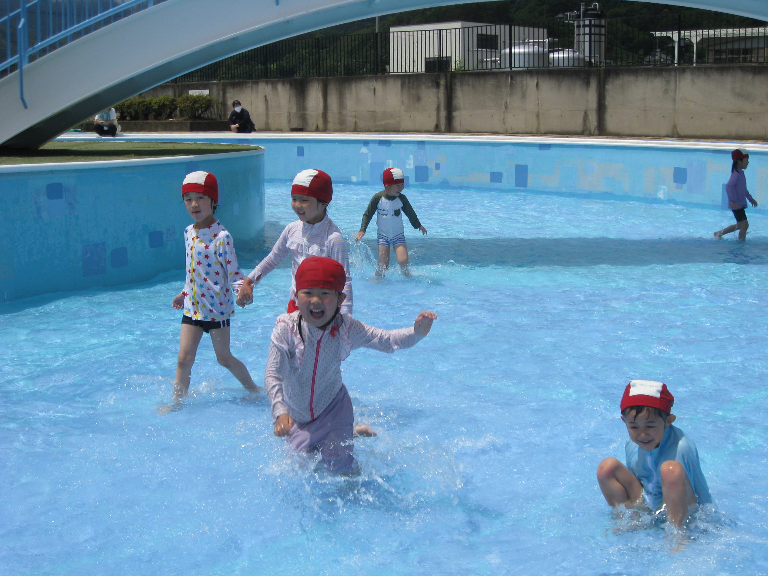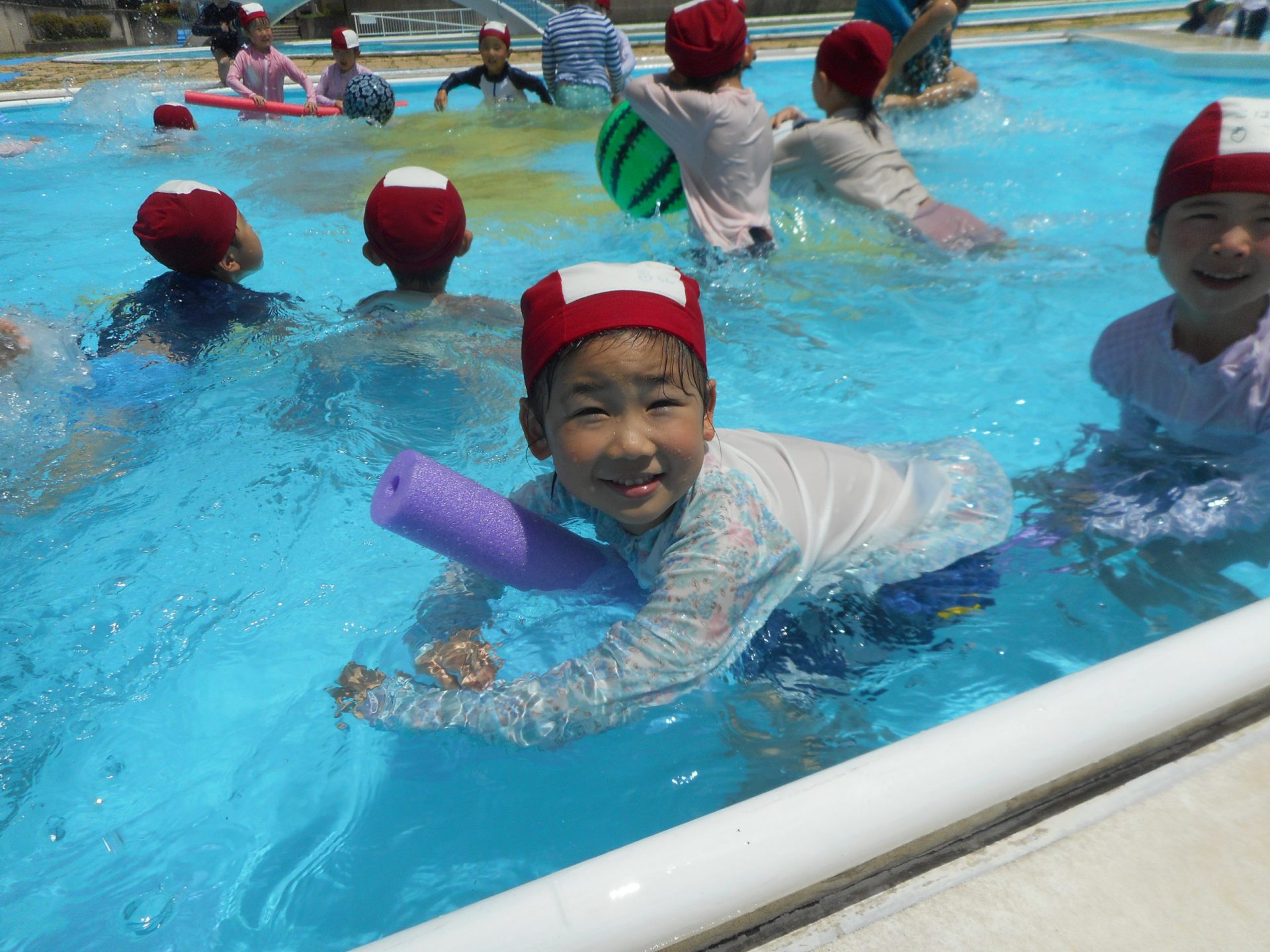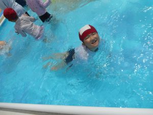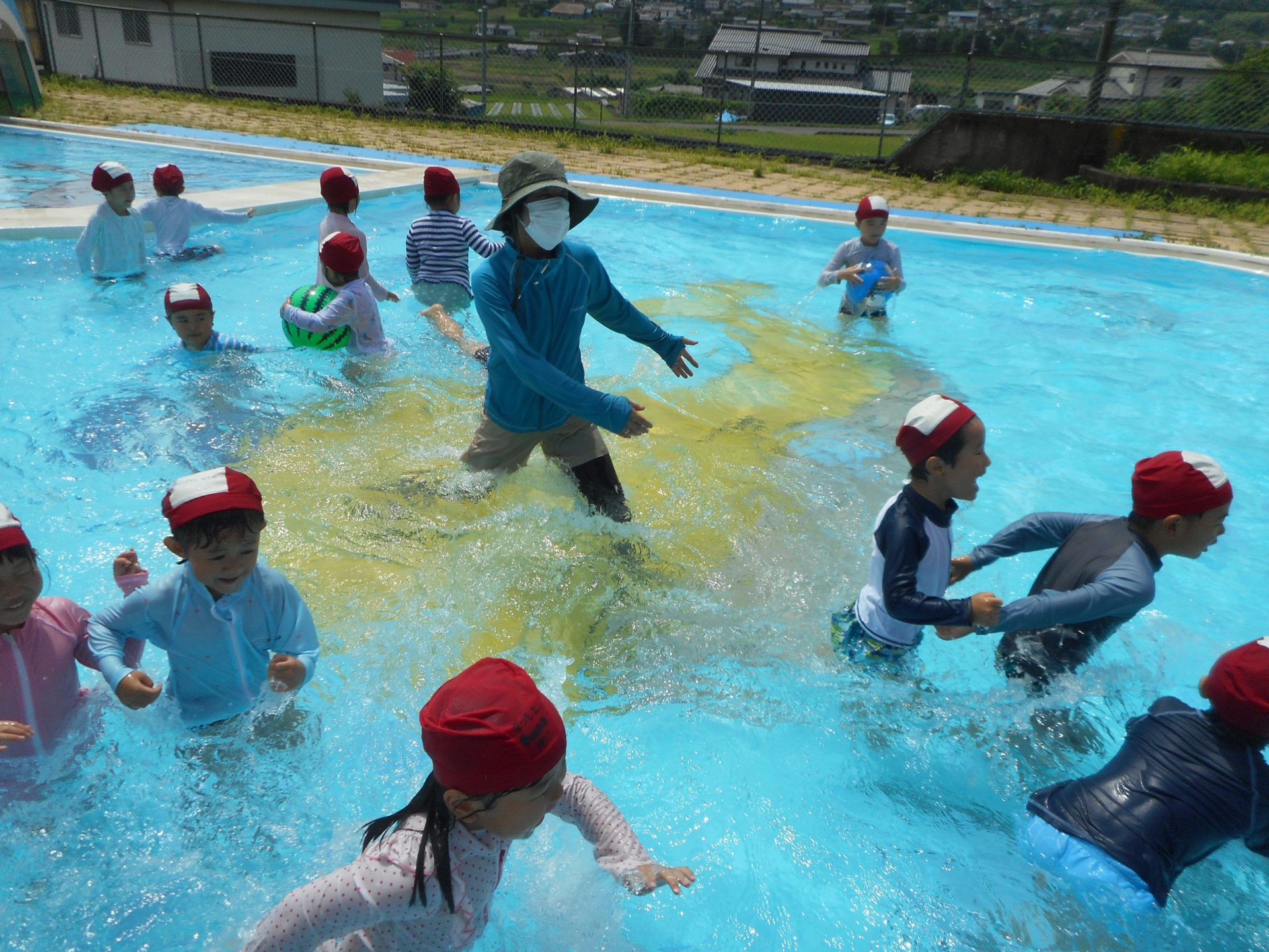 プールでは、じゃんけん列車、宝探しゲームや、プールの中で回って回ってみんなの足の力で流れるプールも作りました!