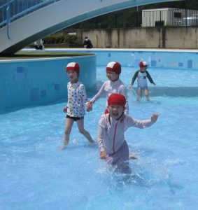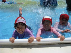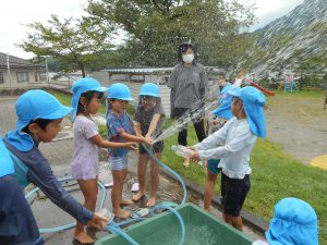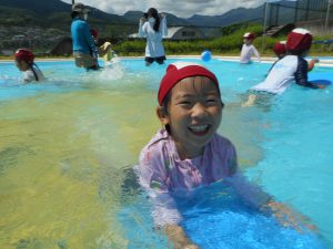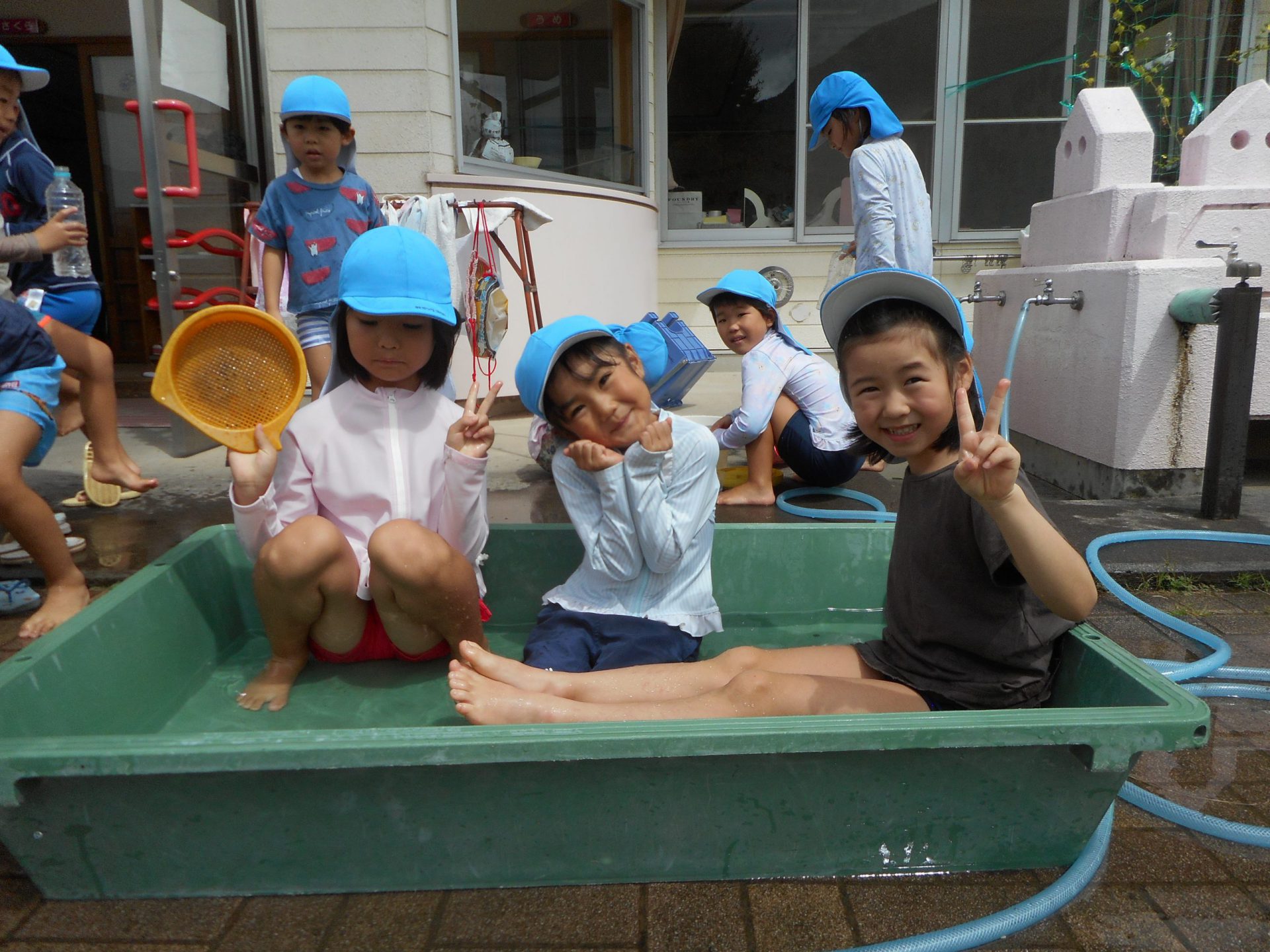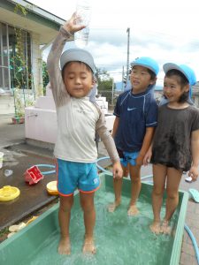 水あそびでまた大きく成長した子どもたち。来年は憧れの小学校のプールで今年の成果を発揮してね!
