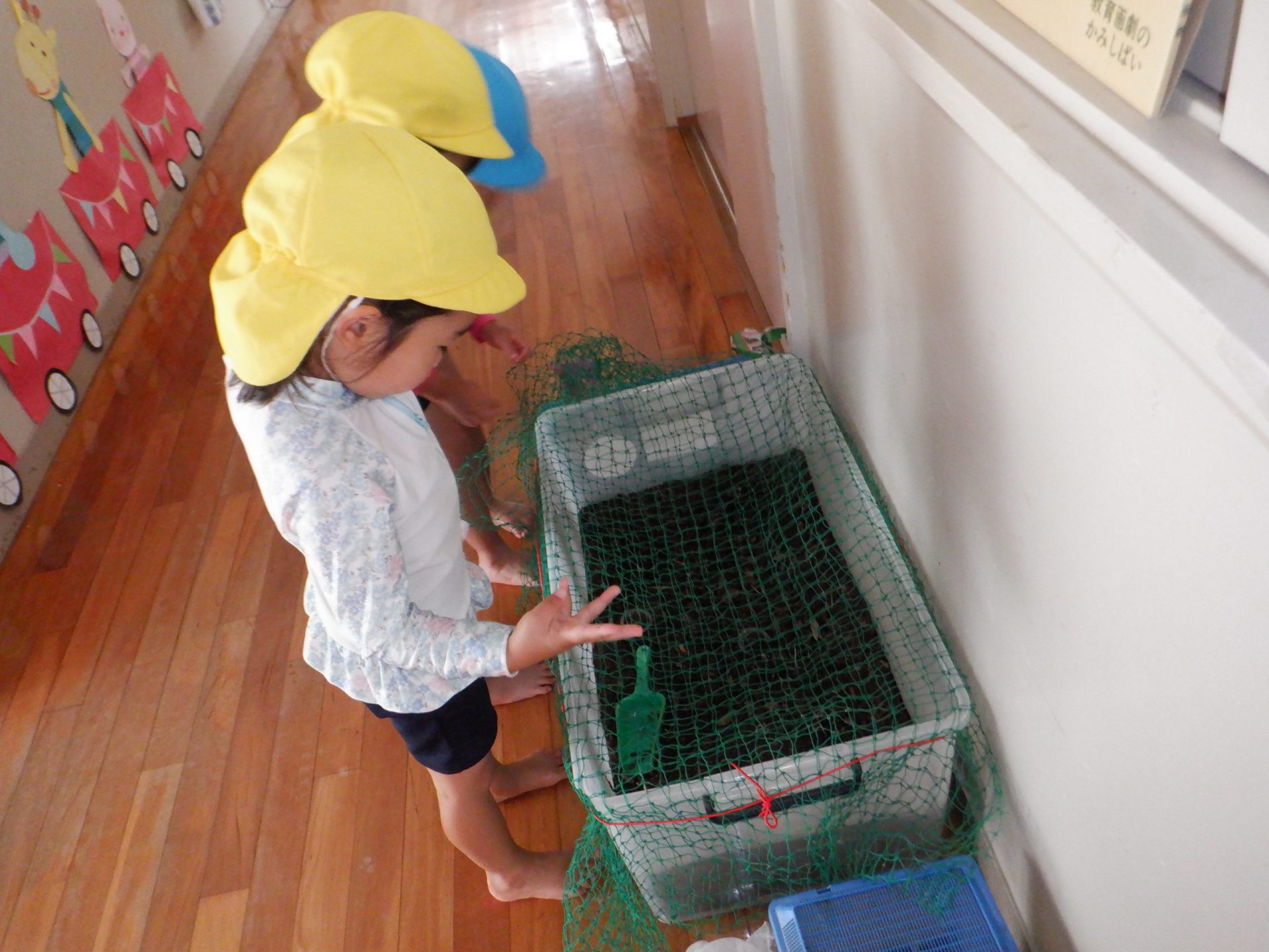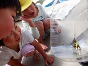 たくさん成虫になったので、他の保育園のお友だちにも分けてあげました。