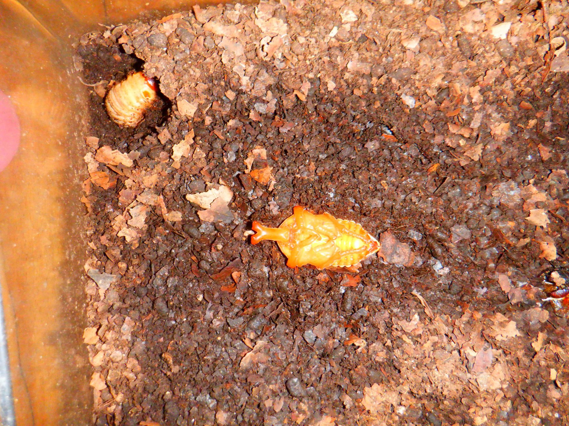 もぞもぞと土の上に幼虫や蛹が出てくる日もありました。