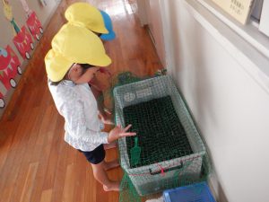 ・生き物を育てることは並大抵でなく、保育者自身も調べたり、準備したり、時には失敗することもあるが、子ども達の興味に寄り添いながら、ともに経験を重ねていきたいと思う。